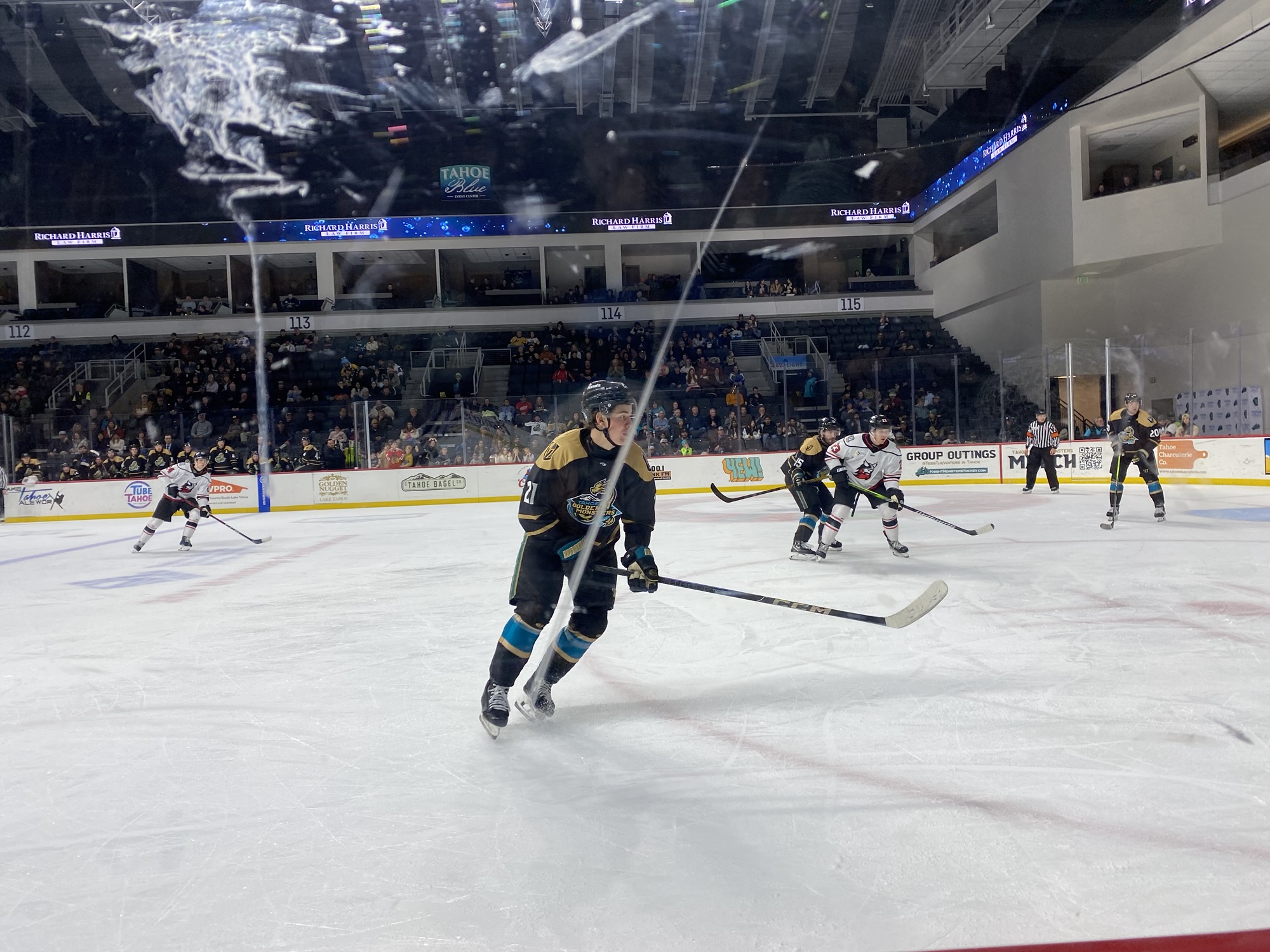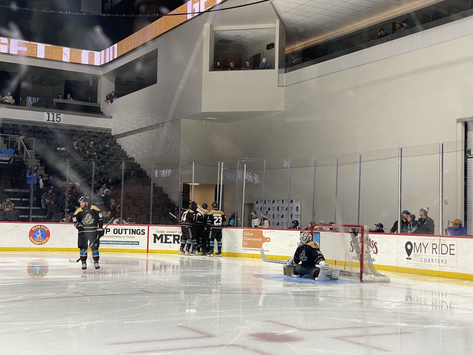 Shortly after the goal, Bear Hughes of the Golden Monsters received a penalty for interference. With just under two minutes left in the game, the Thunder pulled their goalie. The Golden Monsters held onto their lead. The final score was 3-1 Tahoe Golden Monsters.
