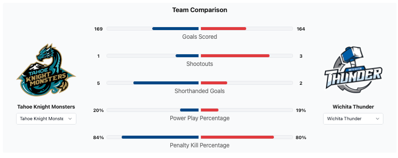 The all-time record between the Tahoe Knight Monsters and the Wichita Thunder is 0-0-0. They have not played each other yet.