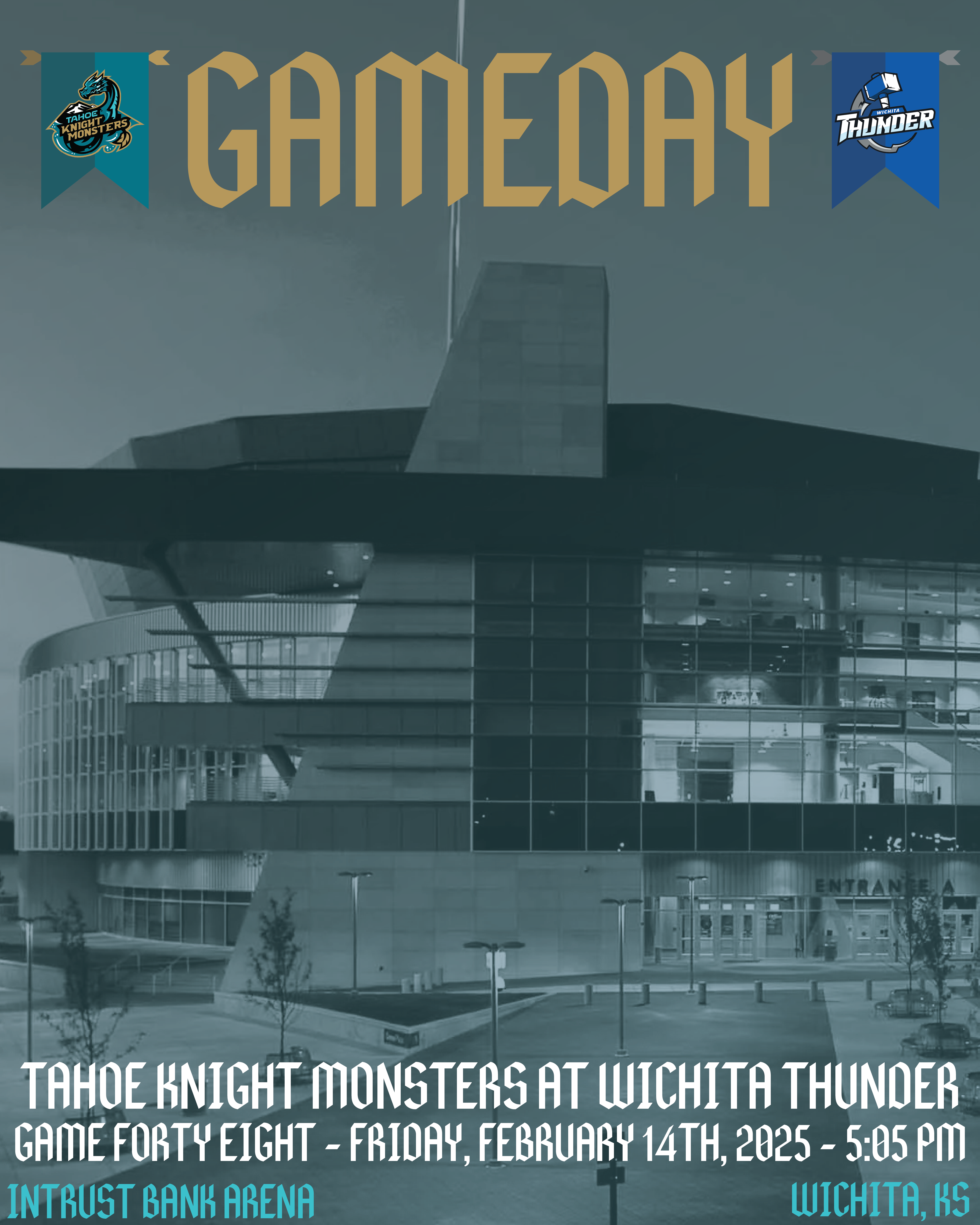 This is the Tahoe Golden Monsters 48th game of the season. The Tahoe Golden Monsters are the Vegas Golden Knights ECHL affiliate. They are coming off of a 3-2 overtime victory over the Adirondack Thunder. The Tahoe Knight Monsters have a record of 28-15-4. The Knight Monsters are in 9th place in the ECHL. The Golden Monsters are 3rd in the Western Conference and 3rd in the Mountain Division. The Wichita Thunder are the ECHL affiliate of the San Jose Sharks. The Thunder have played forty-seven games this season. The Thunder are coming off of a 3-2 shootout win over the Utah Grizzlies. The Thunder have a record of 27-16-4. The Thunder are in 12th place in the ECHL. The Thunder are in 5 place in the ECHL Western Conference. The Thunder are in 4th place in the ECHL Western Conference Mountain Division.