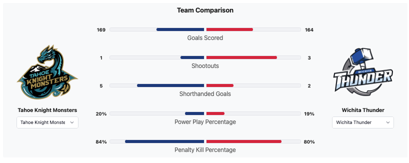 The all-time record between the Tahoe Knight Monsters and the Wichita Thunder is 0-0-0. They have not played each other yet.