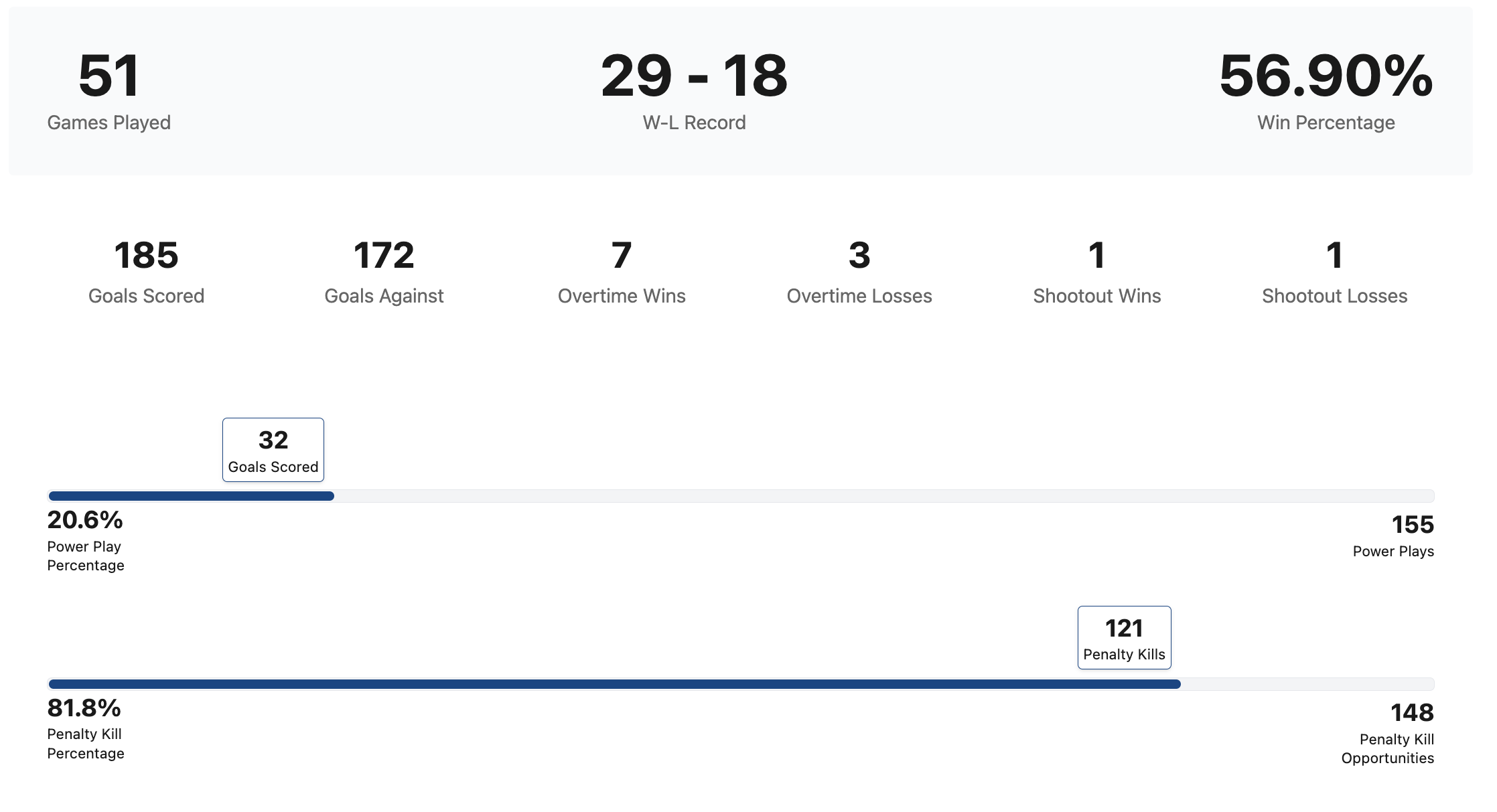 I am writting this as the game is going on. This is the Tahoe Knight Monsters 52nd game of the season. The Tahoe Knight Monsters are the Vegas Golden Knights ECHL affiliate. They are coming off of a 2-4 defeat to the Florida Everblades. The Tahoe Knight Monsters have a record of 29-18-4. The Knight Monsters are in 11th place in the ECHL. The Knight Monsters are 5th in the Western Conference and 2nd in the Mountain Division. The Florida Everblades are the ECHL affiliate of the St. Louis Blues. The Everblades have played fifty games this season. The Everblades are coming off of a 4-2 win over the Tahoe Knight Monsters. The Everblades have a record of 35-9-6. The Everblades are in 1st place in the ECHL. The Everblades are in 1st place in the ECHL Eastern Conference. The Everblades are in 1st place in the ECHL Eastern Conference South Division. The all-time record between the Tahoe Knight Monsters and the Florida Everblades is 0-1-0. They have played each other once. The Knight Monsters have scored 2 goals on the Everblades all time. The Knight Monsters have allowed the Everblades to scored 4 goals all time. The last time they played each other was on Wednesday, February 19th, 2025. The Knight Monsters lost that game 2-4.