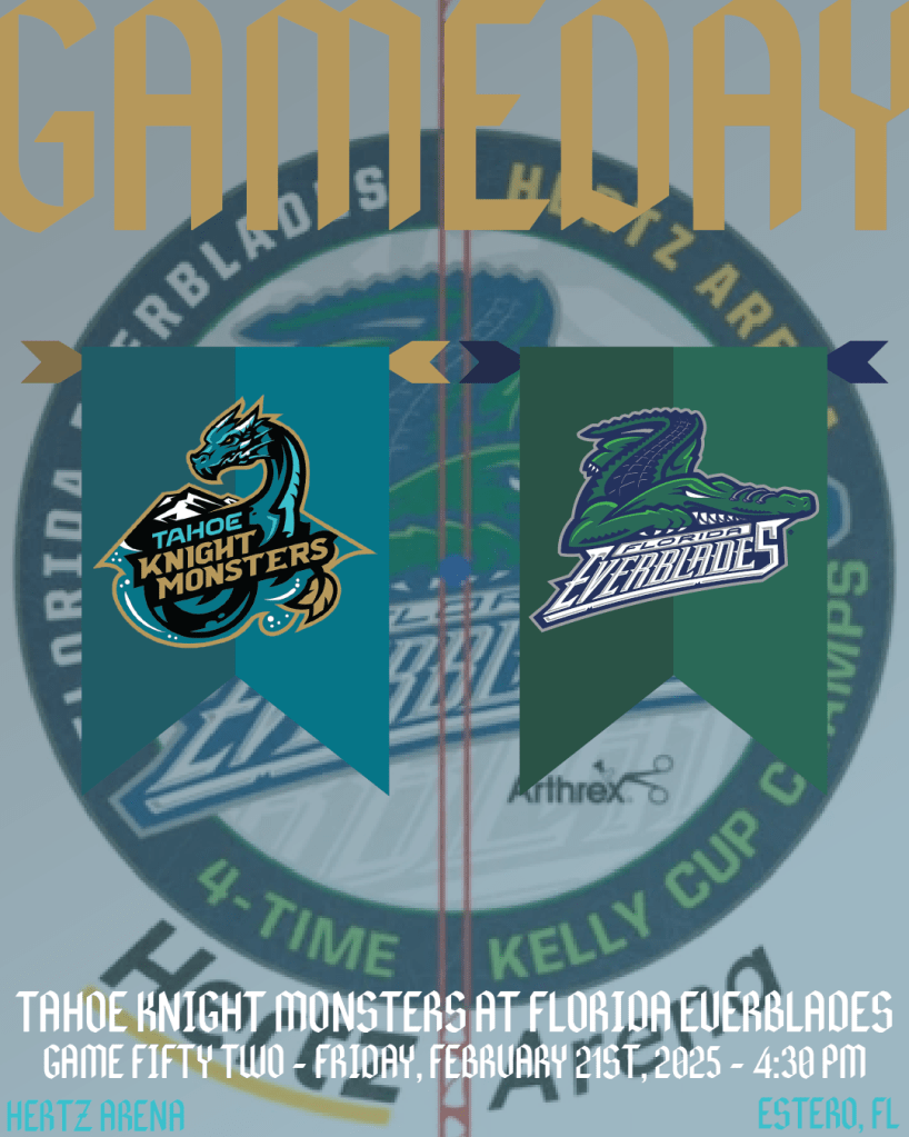 This is the second of three games in Florida. The Tahoe Knight Monsters are looking to break their losing streak. The Florida Everblades are looking to extend their winning streak. This is a matchup between the top scoring team in the league and the top defensive team in the league. Will the Knight Monsters bounce back with a win? Will the Everblades continue to win?