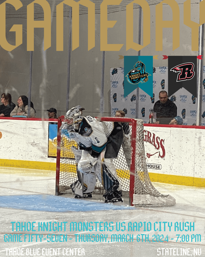 This is the Tahoe Knight Monsters 57th game of the season. The Tahoe Knight Monsters are the Vegas Golden Knights ECHL affiliate. They are coming off of a 1-4 defeat to the Allen Americans. The Tahoe Knight Monsters have a record of 32-20-4. The Knight Monsters are in 11th place in the ECHL. The Knight Monsters are 6th in the Western Conference and 3rd in the Mountain Division. The Rapid City Rush are the ECHL affiliate of the Calgary Flames. The Rush have played fifty-four games this season. The Rush are coming off of a 3-4 overtime loss to the Idaho Steelheads. They are on a thirteen game point streak. The Rush have a record of 23-22-9. The Rush are in 19th place in the ECHL. The Rush are in 9th place in the ECHL Western Conference. The Rush are in 6th place in the ECHL Western Conference Mountain Division.