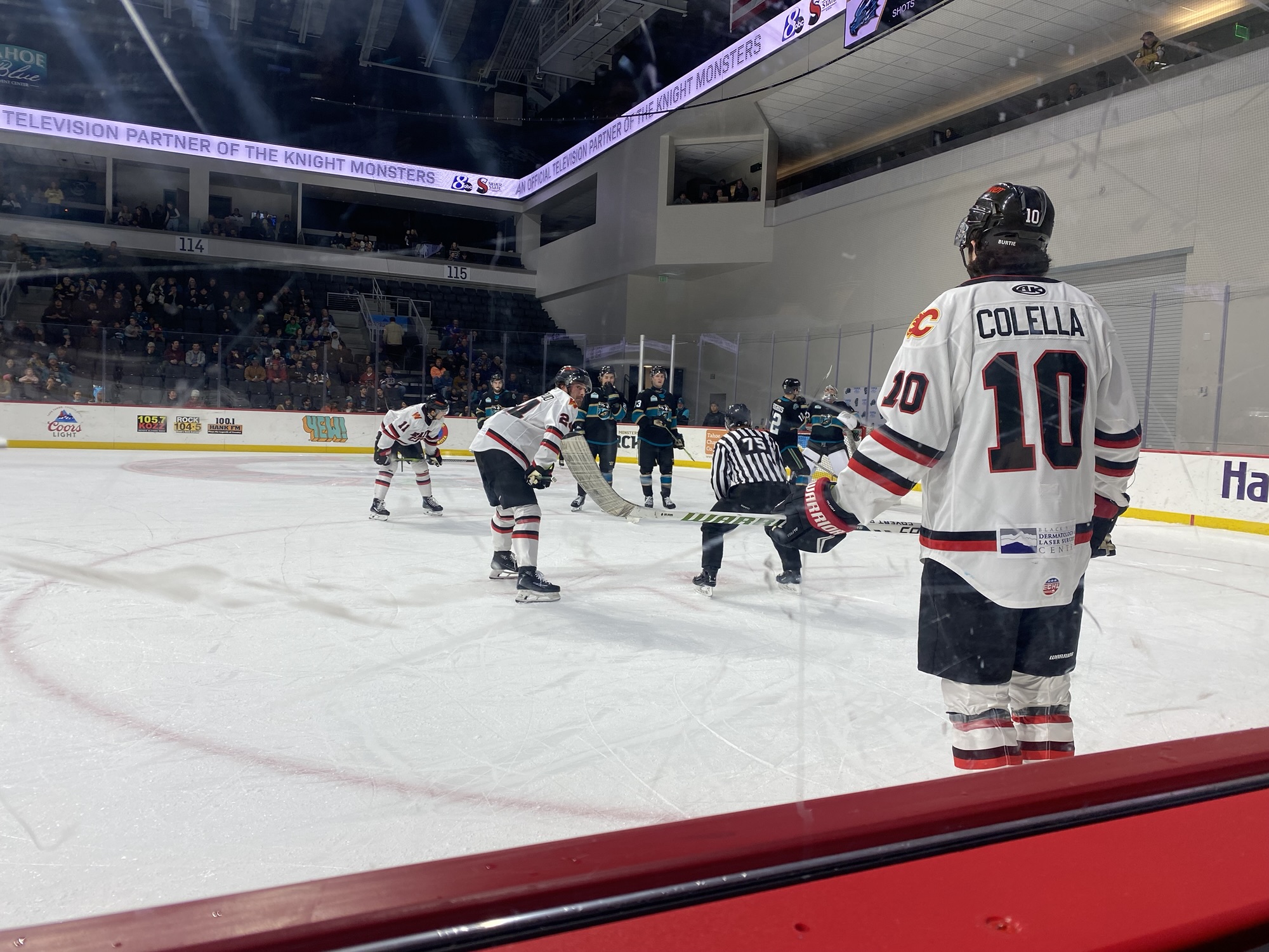 With under six minutes remaining in the game, Luke Adam of the Knight Monsters took a puck to the ankle. He was struggling to stay on the ice. It did look like he was in a lot of pain. However he did not leave the game. He powered through his shift and came back for the next one. The Rush did pull their goalie with under two minutes remaining in the game. The Knight Monsters couldn’t score on the empty net. The rush didn’t get any help from the extra attacker.