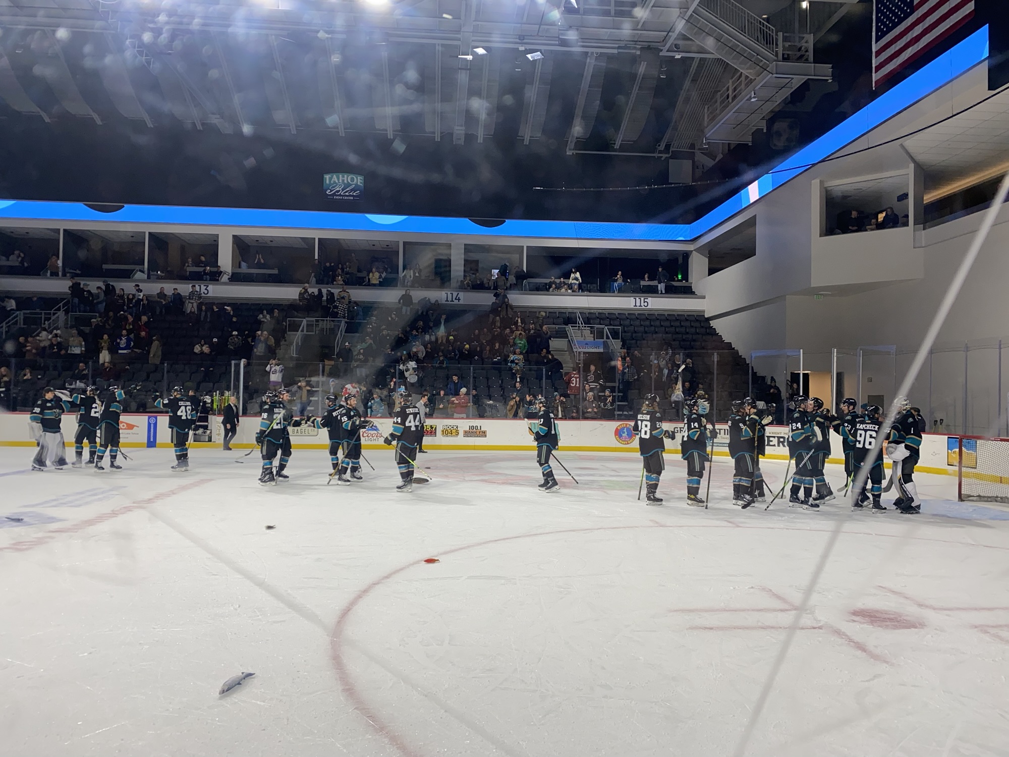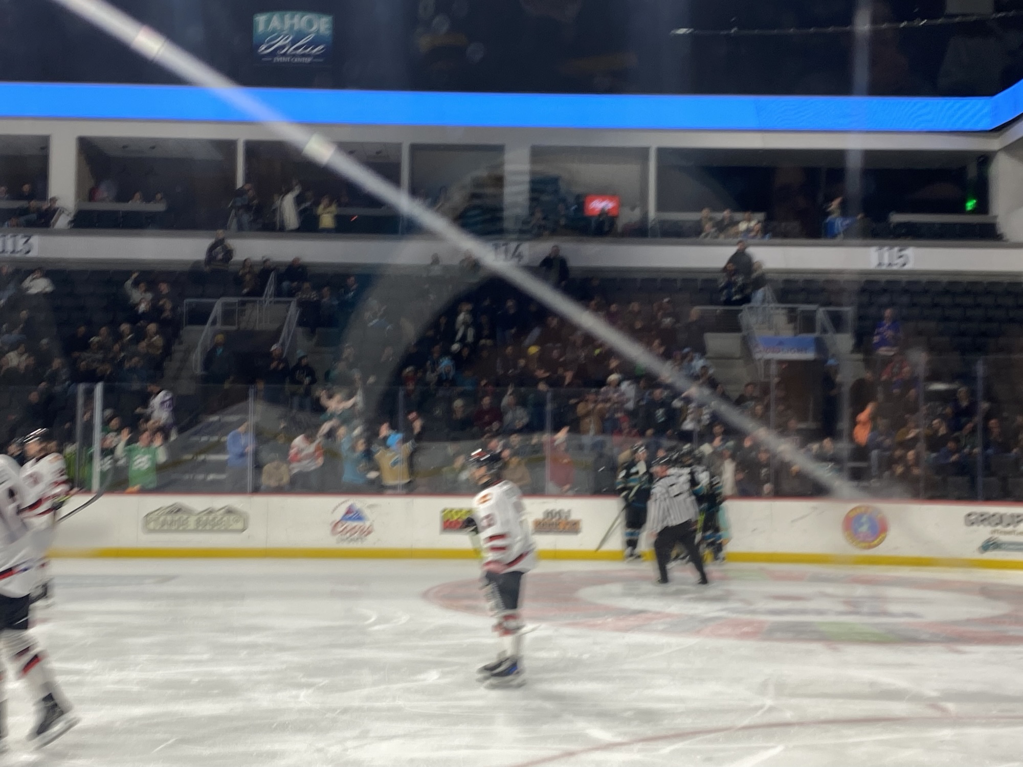 The Rapid City Rush scored first. It did not take long for the Tahoe Knight Monsters to tie the game. The first period ended in a stalemate. The Knight Monsters had a burst of offense to start the second period. The Rush came close to tying the game in the second half of the second period. A late second period goal from the Knight Monsters kept their two goal lead in tact heading into the final frame. The Rush got one back in the third but it was not enough. The Knight Monsters held on to win. There was a fight in the stands after the game too. I was at the other side of the arena. I did not see it. I just saw all of the security drop what they were doing to run over to the opposite end of the stands. I was told after by security that there was a fight. The offense showed up for the Knight Monsters in this one. It was about time. This feels like the first game in a while where the Knight Monsters have scored more than two goals. I am all here for it. It was a very exciting game.