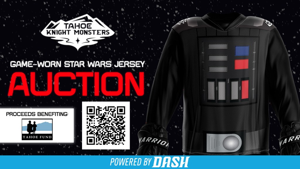 Tonight is Star Wars night. It should be a lot of fun. The Tahoe Knight Monsters will be wearing Darth Vader themed jerseys. There will be special merch at the game. I knight they have shirts and “light swords”.