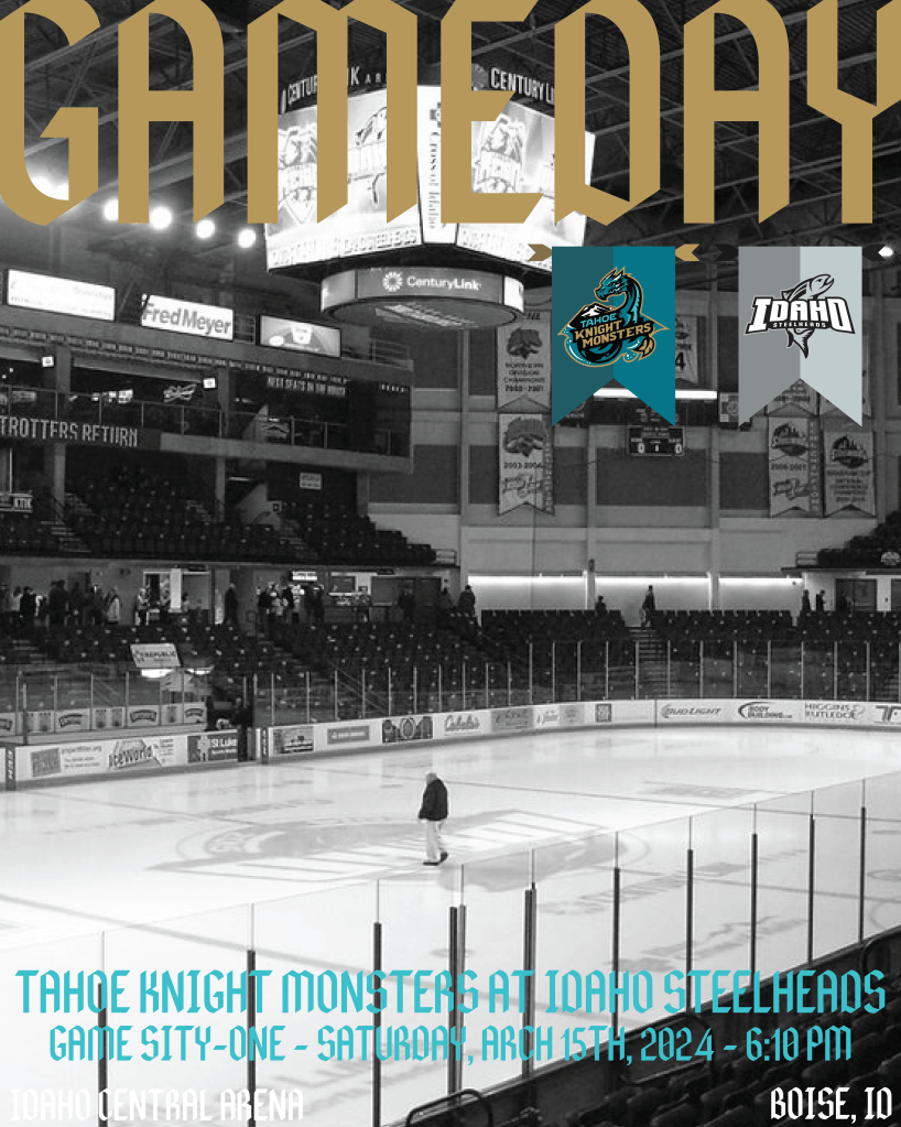 This is the second of back to back games in Idaho. The Tahoe Knight Monsters are trying to get back at the top of the division. The Idaho Steelheads are still trying to close the gap to the last playoff spot. Will the Knight Monsters find a another win in Idaho? Will the Steelheads protect their home turf?