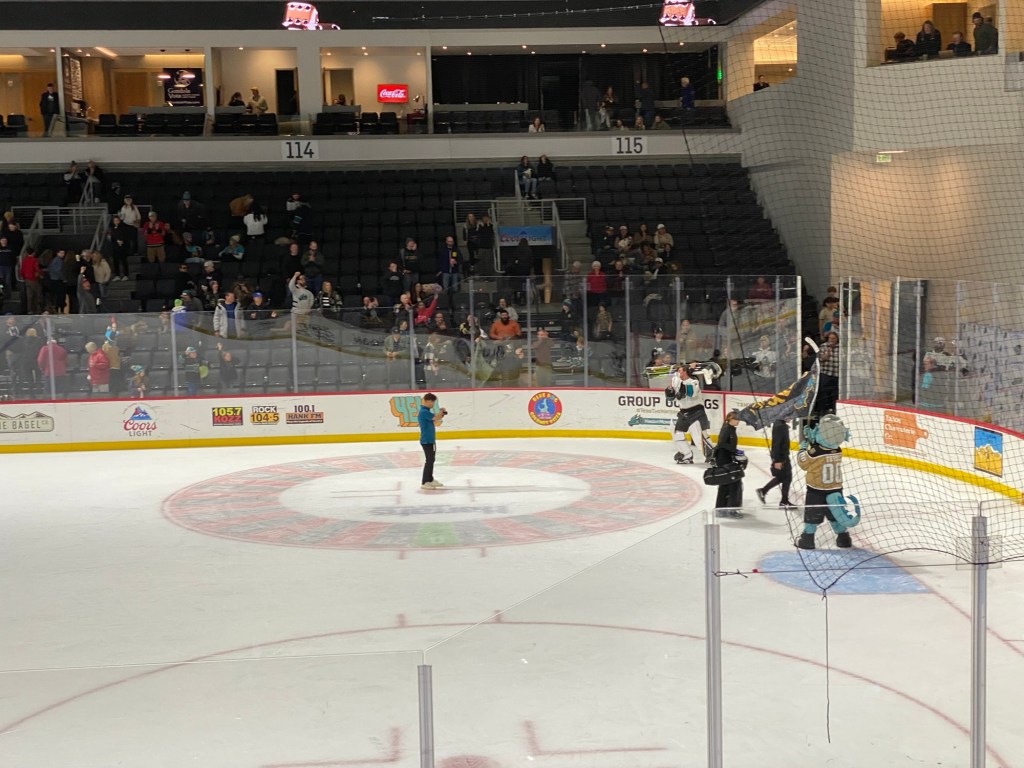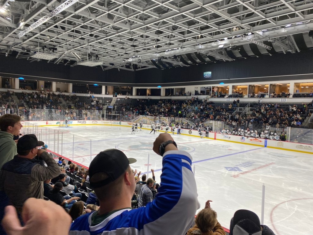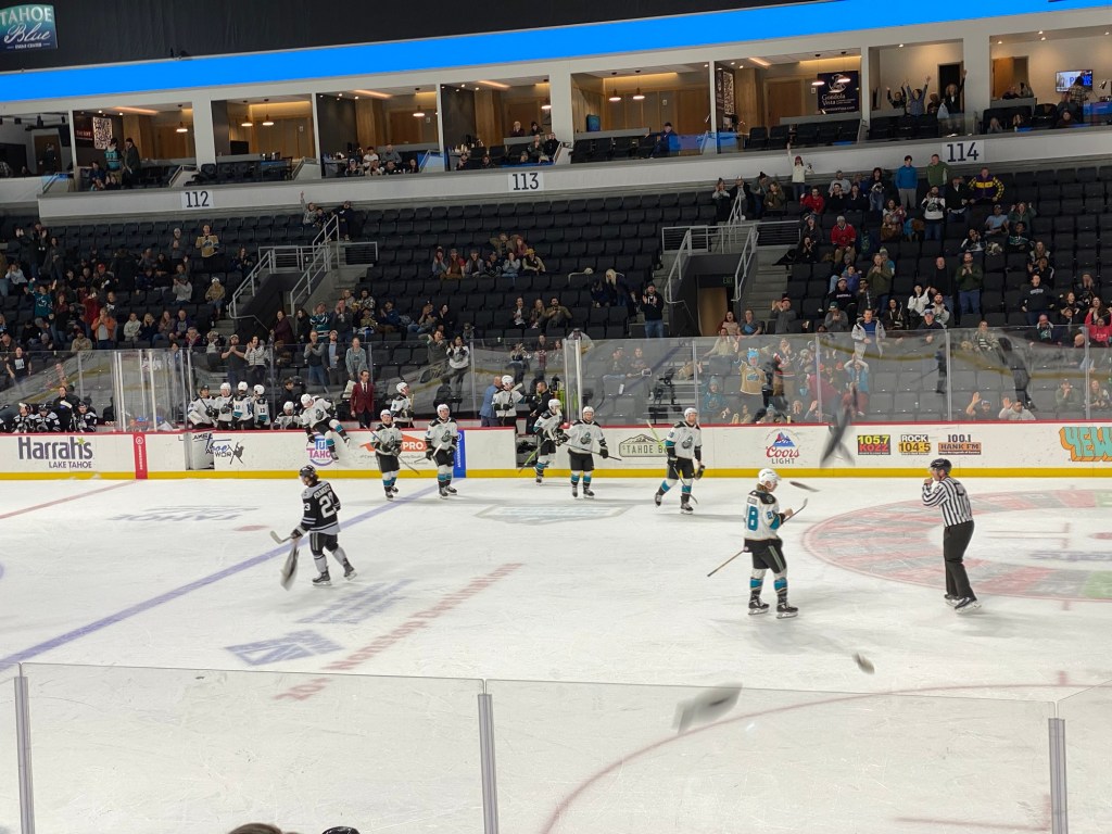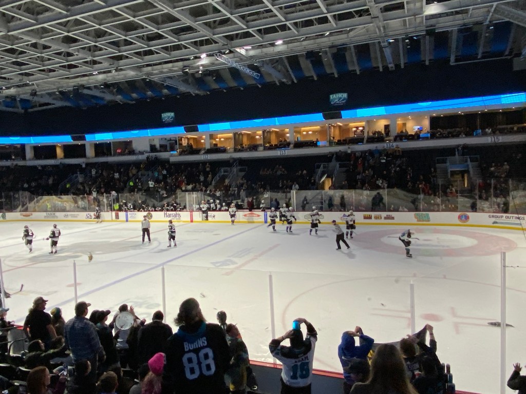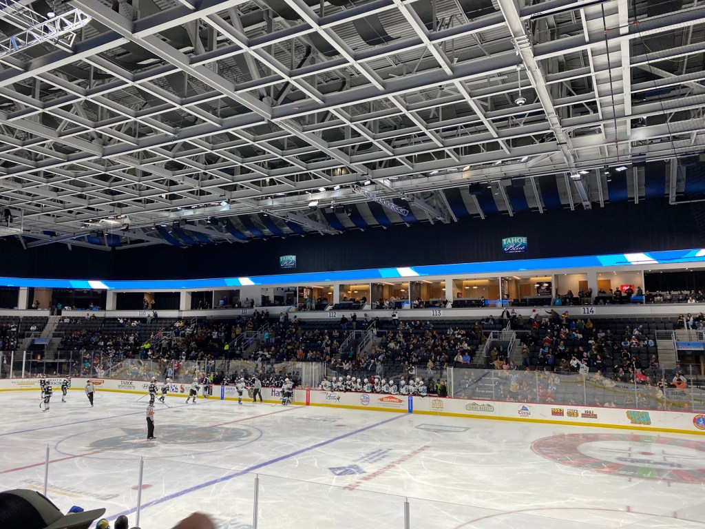 The Idaho Steelheads backup goalie sat on a chair near the entrance to the rink. This is the first time I have seen that at a Knight Monsters game. Usually they are on the bench. took the lead in the first period. The Tahoe Knight Monsters tied the game in the second period. The Knight Monsters got the offense rolling in the third period with four goals in five minutes. The game started off slow. It had its chippy moments. Then the Knight Monsters found their grove. The Knight Monsters ended the Steelheads winning streak. The Knight Monsters extended their point streak to eight games. The Knight Monsters extended their winning streak to five games.