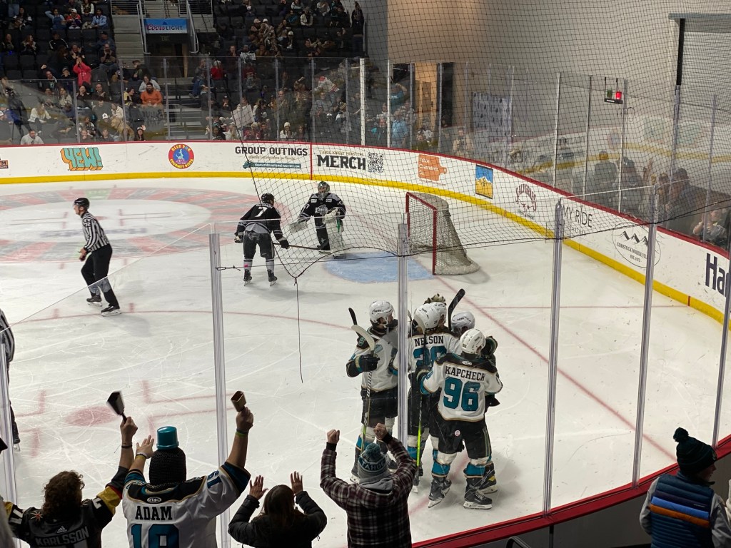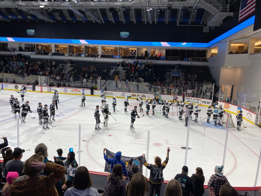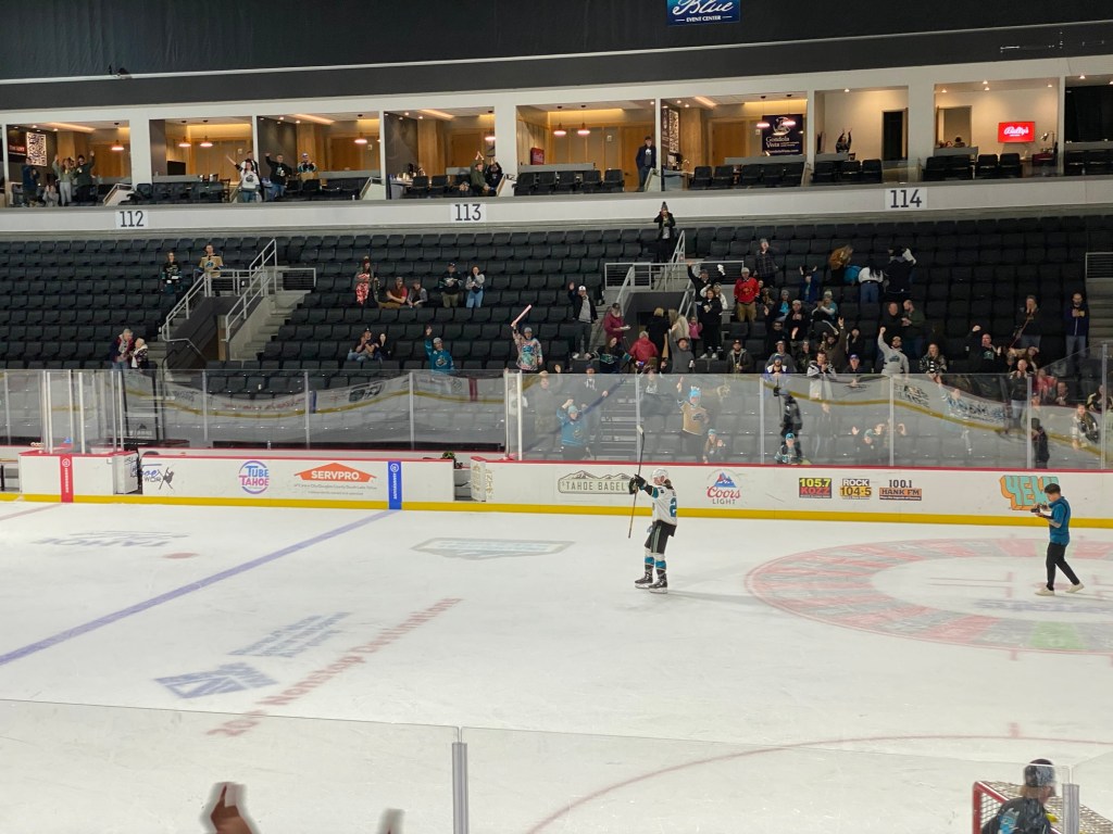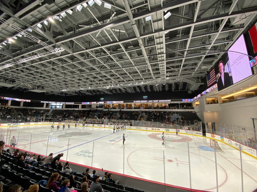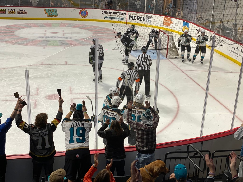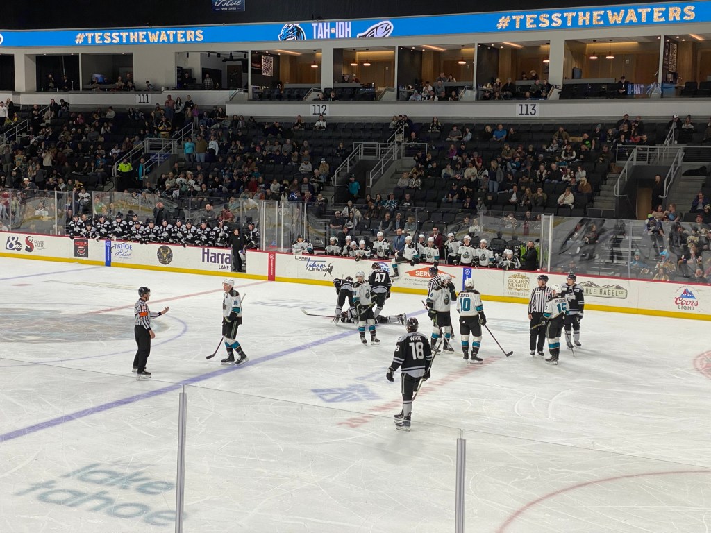 The Idaho Steelheads backup goalie sat on a chair near the entrance to the rink. This is the first time I have seen that at a Knight Monsters game. Usually they are on the bench. took the lead in the first period. The Tahoe Knight Monsters tied the game in the second period. The Knight Monsters got the offense rolling in the third period with four goals in five minutes. The game started off slow. It had its chippy moments. Then the Knight Monsters found their grove. The Knight Monsters ended the Steelheads winning streak. The Knight Monsters extended their point streak to eight games. The Knight Monsters extended their winning streak to five games.