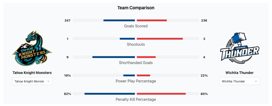 This is the Tahoe Knight Monsters 70th game of the season. The Tahoe Knight Monsters are the Vegas Golden Knights ECHL affiliate. They are coming off of a 7-0 victory over the Utah Grizzlies. The Tahoe Knight Monsters have a record of 41-23-5. The Knight Monsters are in 7th place in the ECHL. The Knight Monsters are 3rd in the Western Conference and 2nd in the Mountain Division. The Wichita Thunder are the ECHL affiliate of the San Jose Sharks. The Grizzlies have played sixty-nine games this season. The Thunder are coming off of a 2-0 win over the Allen Americans. The Thunder have a record of 38-24-7. The Thunder are in 11th place in the ECHL. The Thunder are in 5th place in the ECHL Western Conference. The Thunder are in 3rd place in the ECHL Western Conference Mountain Division.