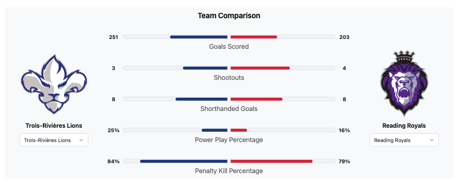 are taking on the number four seed Reading Royals. The Trois-Rivières Lions are the Montreal Canadians affiliate. The Reading Royals are the Philadelphia Flyers affiliate. The Lions finished the regular season with a win percentage of 68%. The Royals finished the regular season with a win percentage of 53%. The Royals won their regular season series 3-2-0. They last played each other on Saturday, March 15th, 2025. The Royals won that game 2-1. The Trois-Rivières Lions are 4-5-1 in their last ten regular season games. They finished the regular season with a win. The Reading Royals are 5-4-1 in their last ten regular season games. They finished the regular season with back-to-back wins.