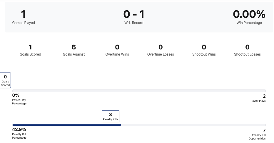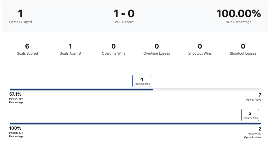 | Tahoe Knight Monsters | 2 | 2 | 0 | 0 | 14 | 2 | +12 |