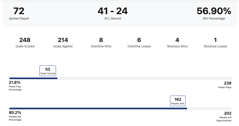 | Tahoe Knight Monsters | 72 | 41 | 25 | 6 | 255 | 228 | +27 | 88 |