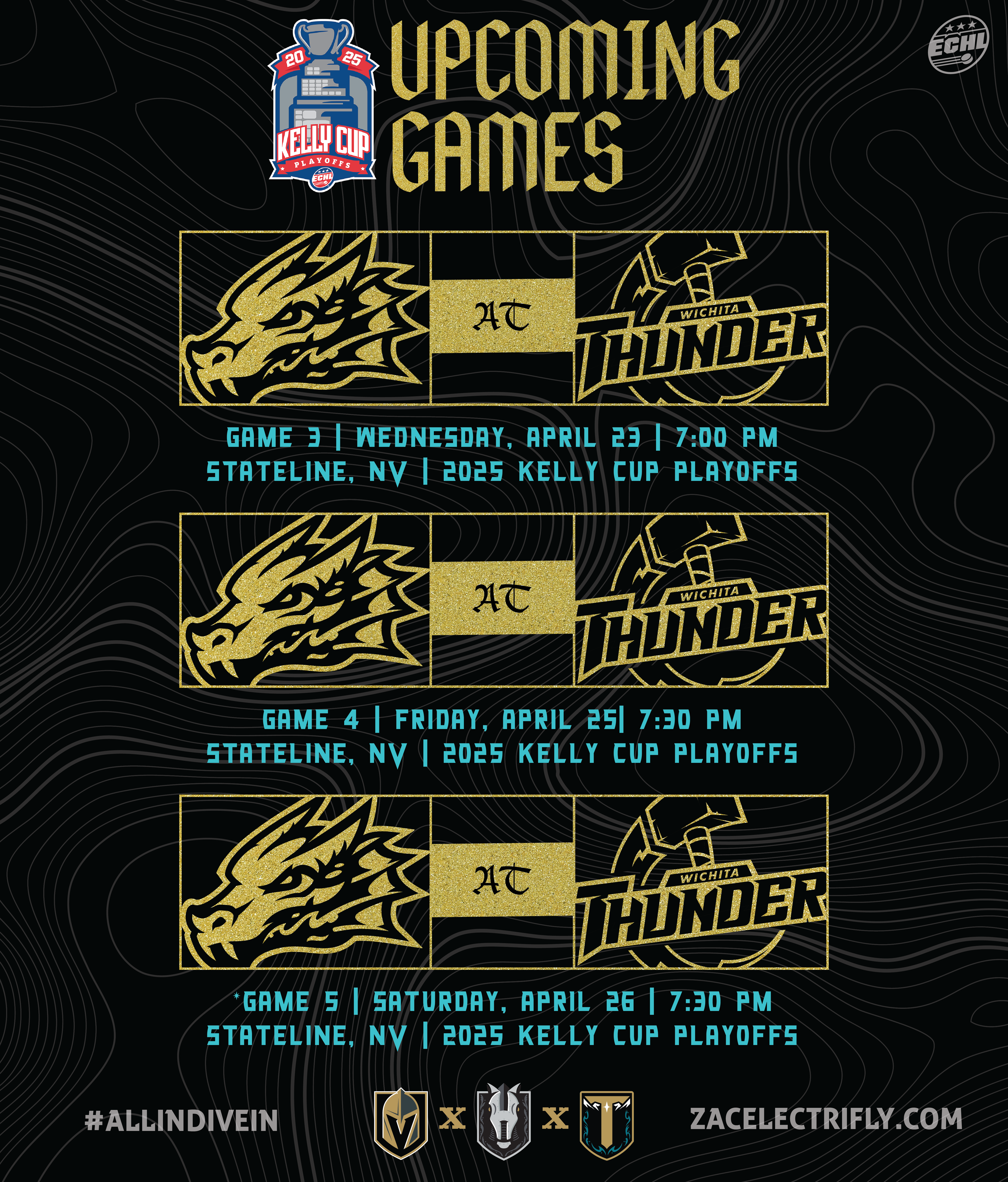 The Tahoe Knight Monsters take on the Wichita Thunder for game four of the 2025 Kelly Cup Playoffs on Friday, April 25th, 2025. This game will be in Sateline, Nevada at the Tahoe Blue Event Center. Puck drop is scheduled for 7:30 PM.