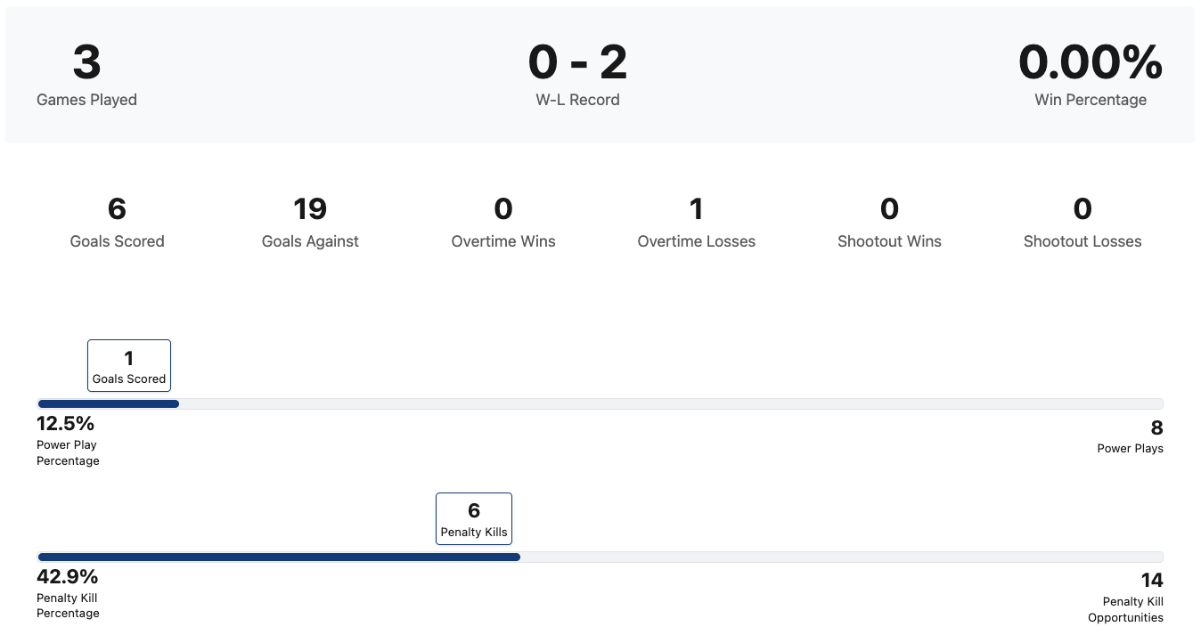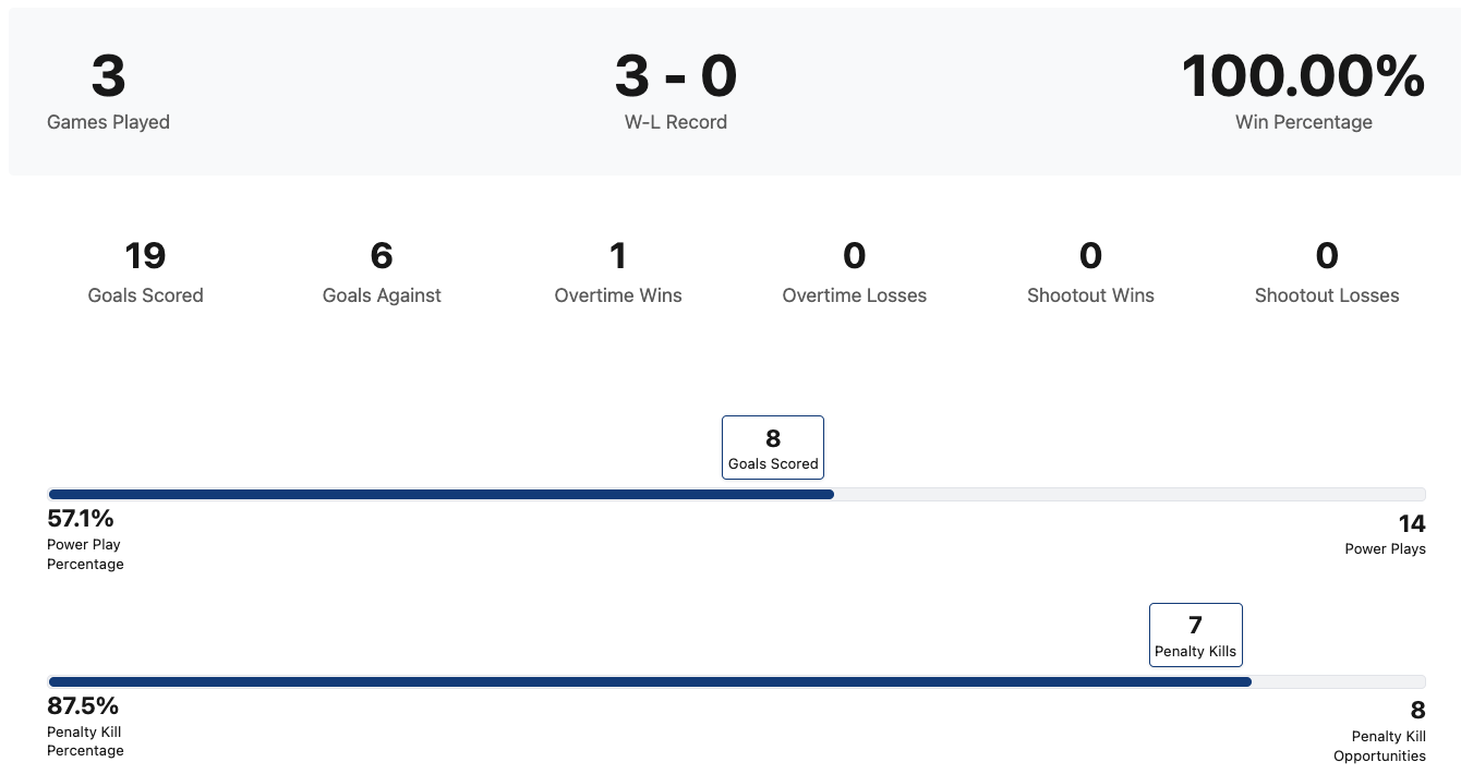 | Tahoe Knight Monsters | 3 | 3 | 0 | 0 | 19 | 6 | +13 |