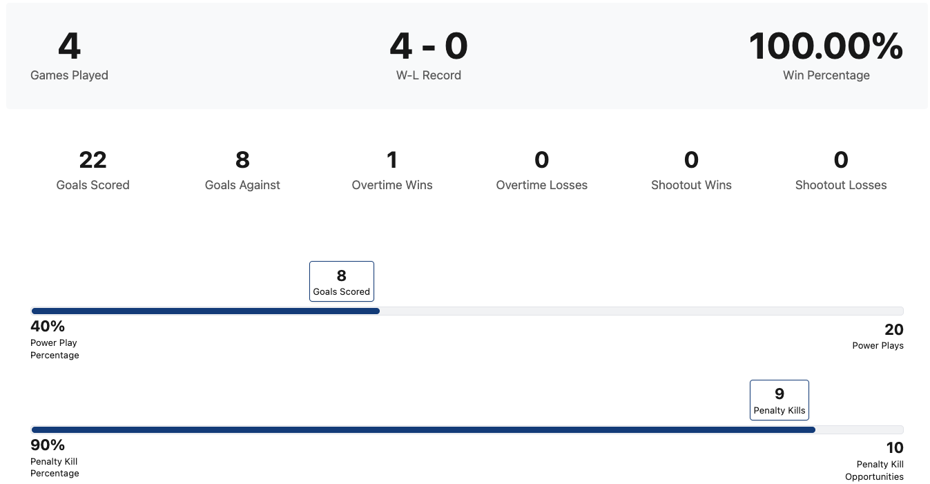 | Tahoe Knight Monsters | 4 | 4 | 0 | 0 | 22 | 8 | +14 |