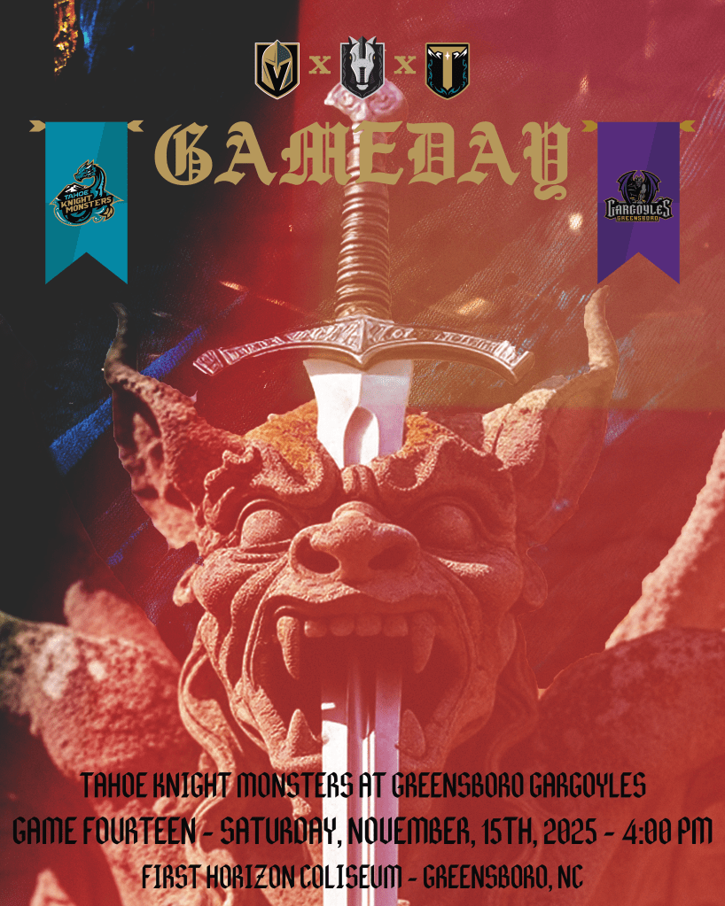 The Tahoe Knight Monsters are heading into the fourteenth game of their season with a familiar opponent, the Greensboro Gargoyles. As the ECHL affiliate of the Vegas Golden Knights, Tahoe enters the matchup with a 7-5-1 record, sitting seventh in the league. The team is looking to bounce back after a 0-2 loss to Greensboro in their previous meeting. The Gargoyles, affiliated with the Carolina Hurricanes, hold a 4-5-3 record and have been riding some momentum, having won both recent matchups against the Knight Monsters. Historically, Tahoe has yet to secure a victory over Greensboro, with the all-time series standing at 0-1-1. Their most recent clash took place on Friday, November 15th, 2025, with Greensboro coming out on top once again.