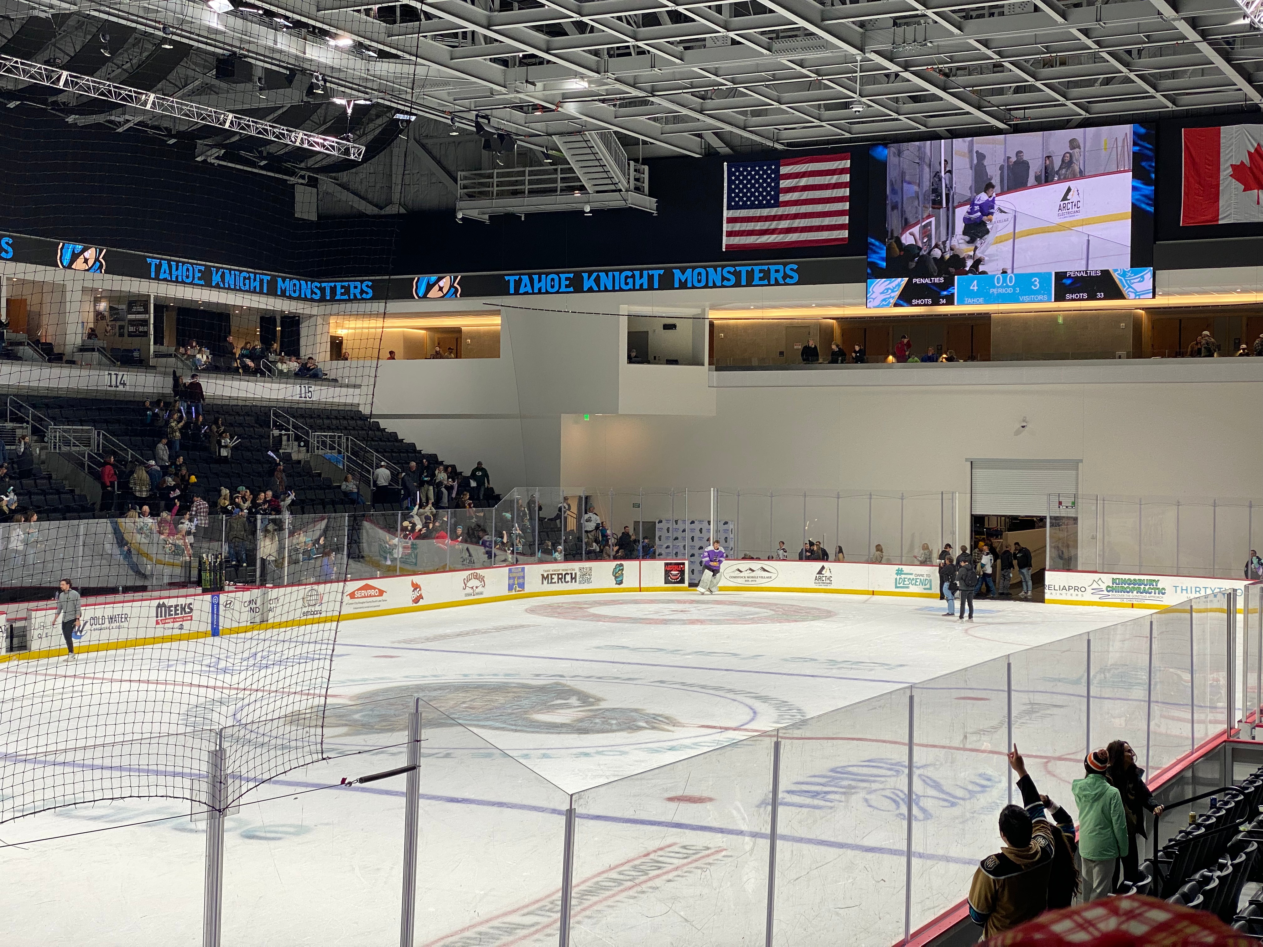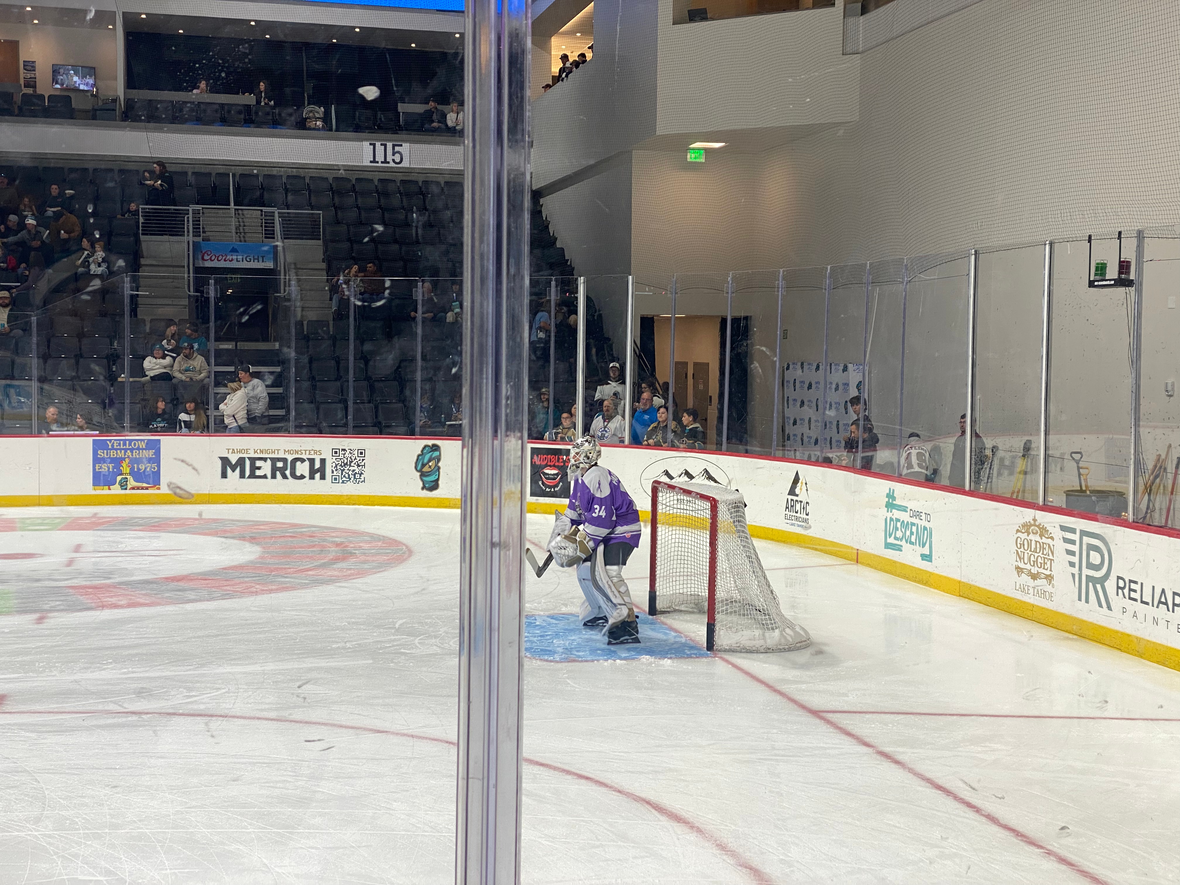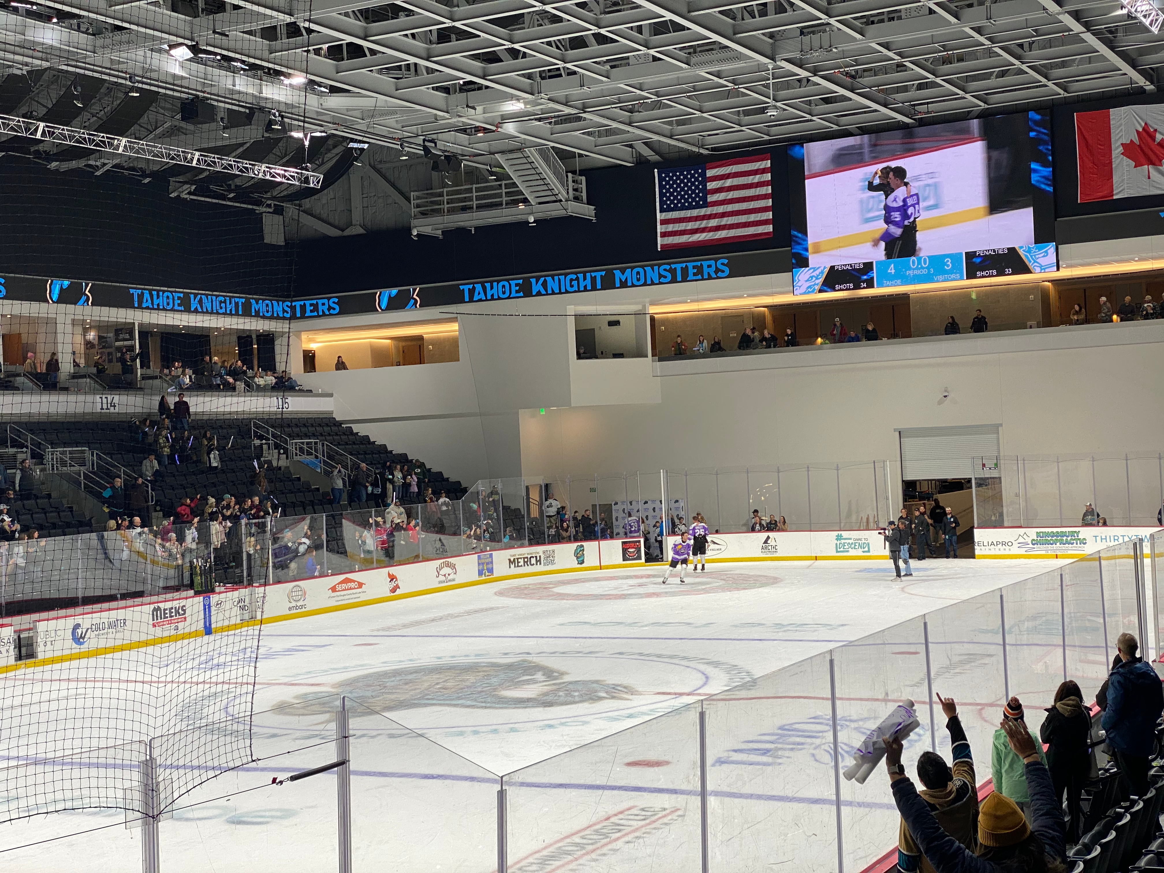 The Ghost Pirates did pull their goalie. The Knight Monsters didn’t score on the empty net. The Ghost Pirates could tie the game with the extra man. The final score was 4-3 Tahoe Knight Monsters.