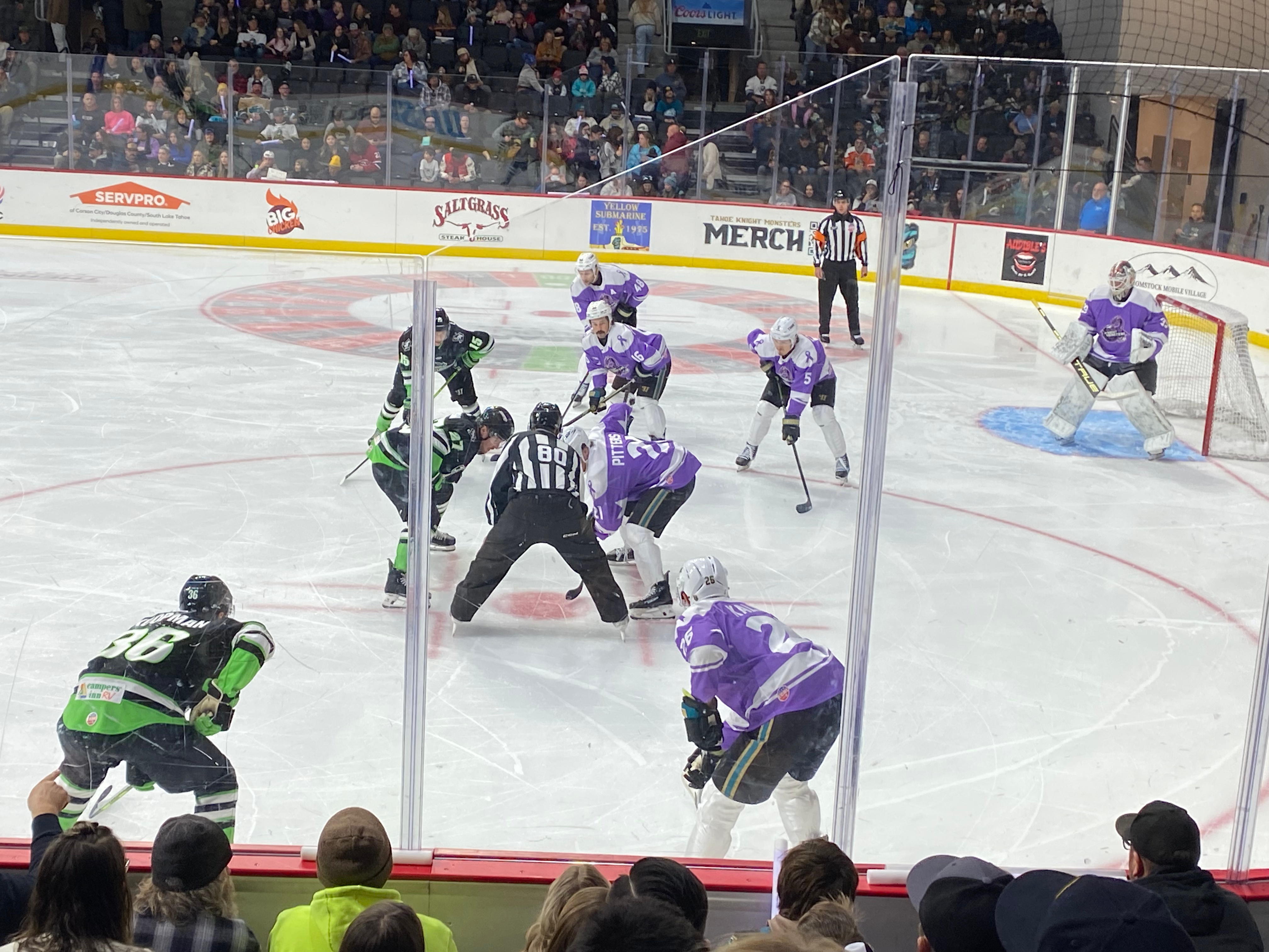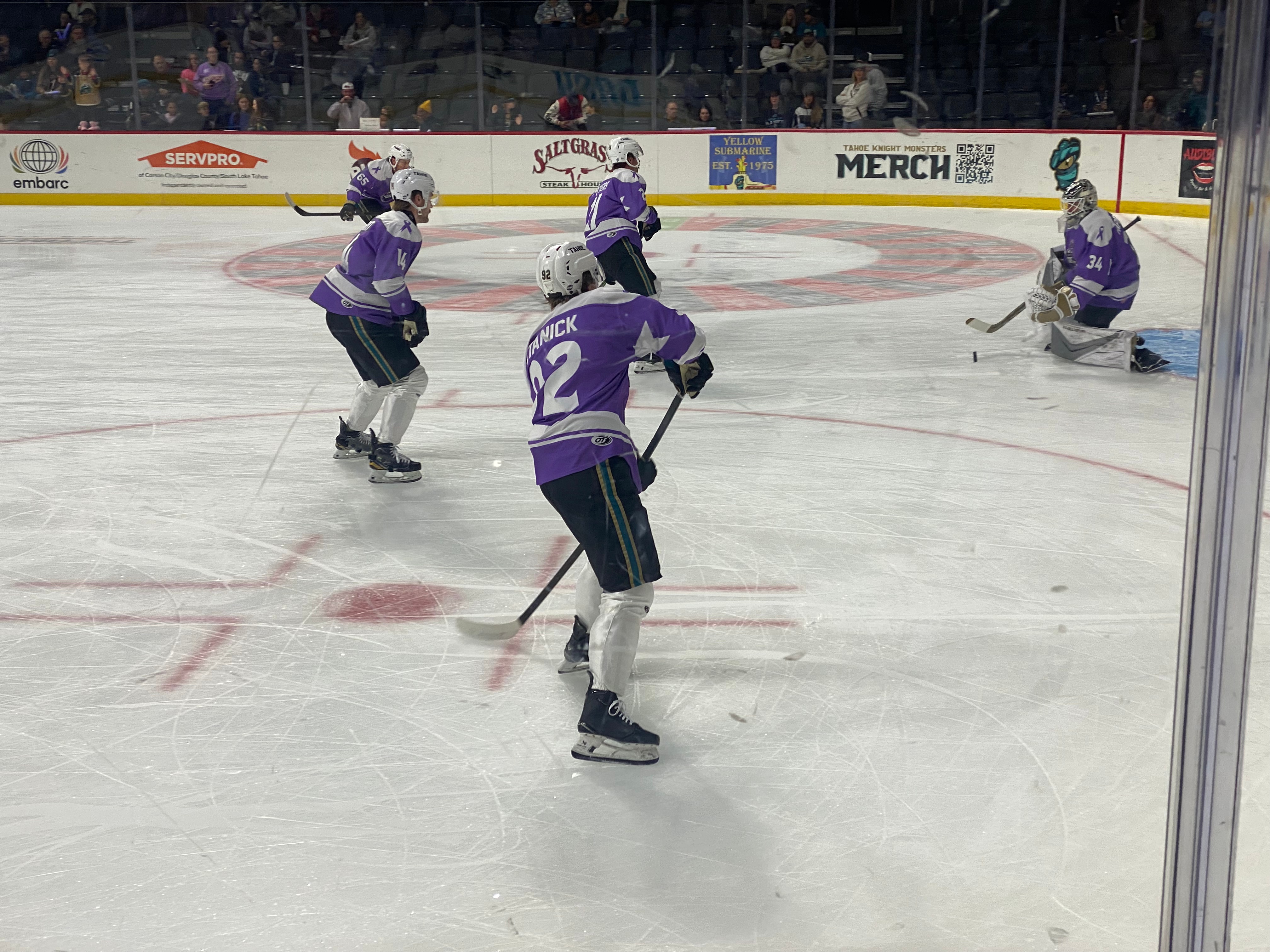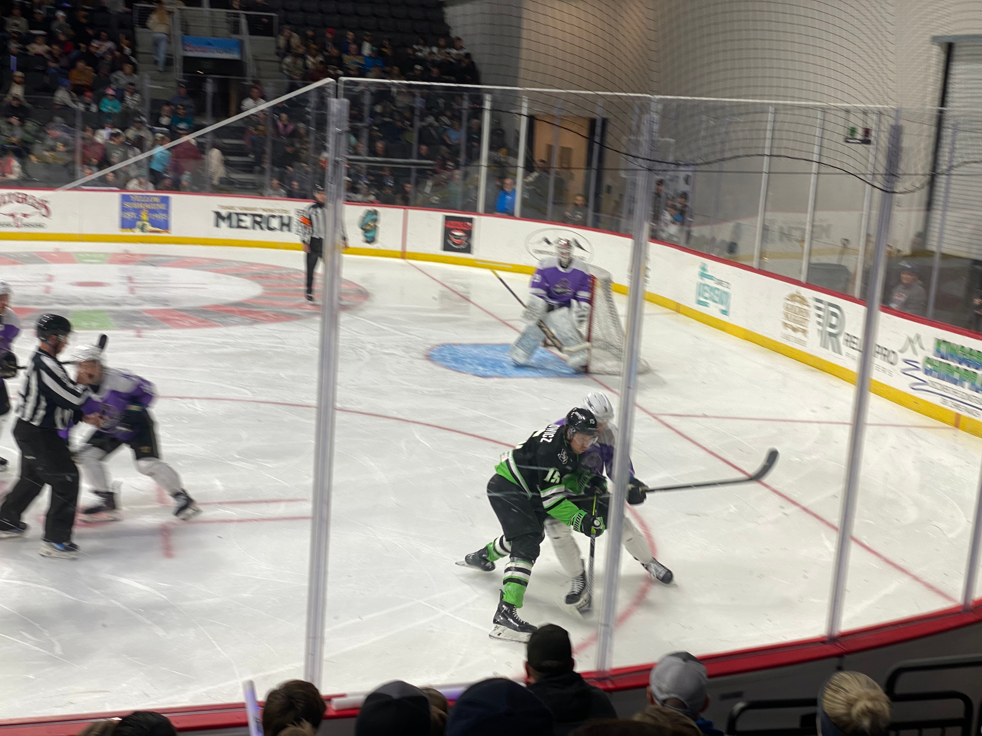 With eight minutes left in the opening period, Keaton Pehrson of the Ghost Pirates received a penalty for high-sticking. On the power play, the Tahoe Knight Monsters tied the game. The tying goal was scored by #65 Devon Paliani. They tying goal was assisted by #92 Sloan Stanick.
