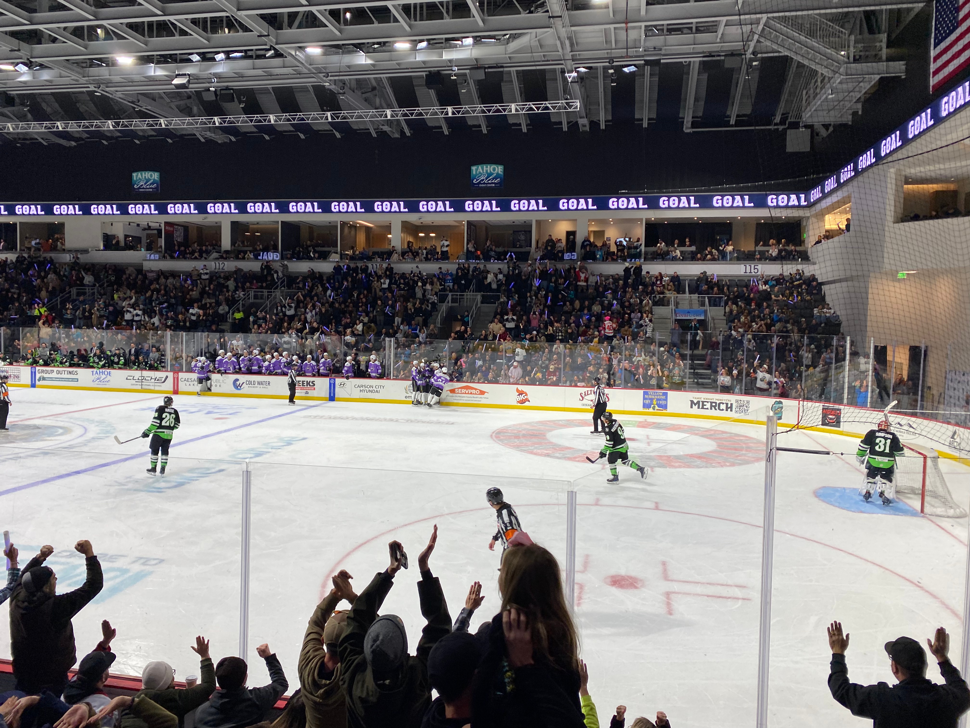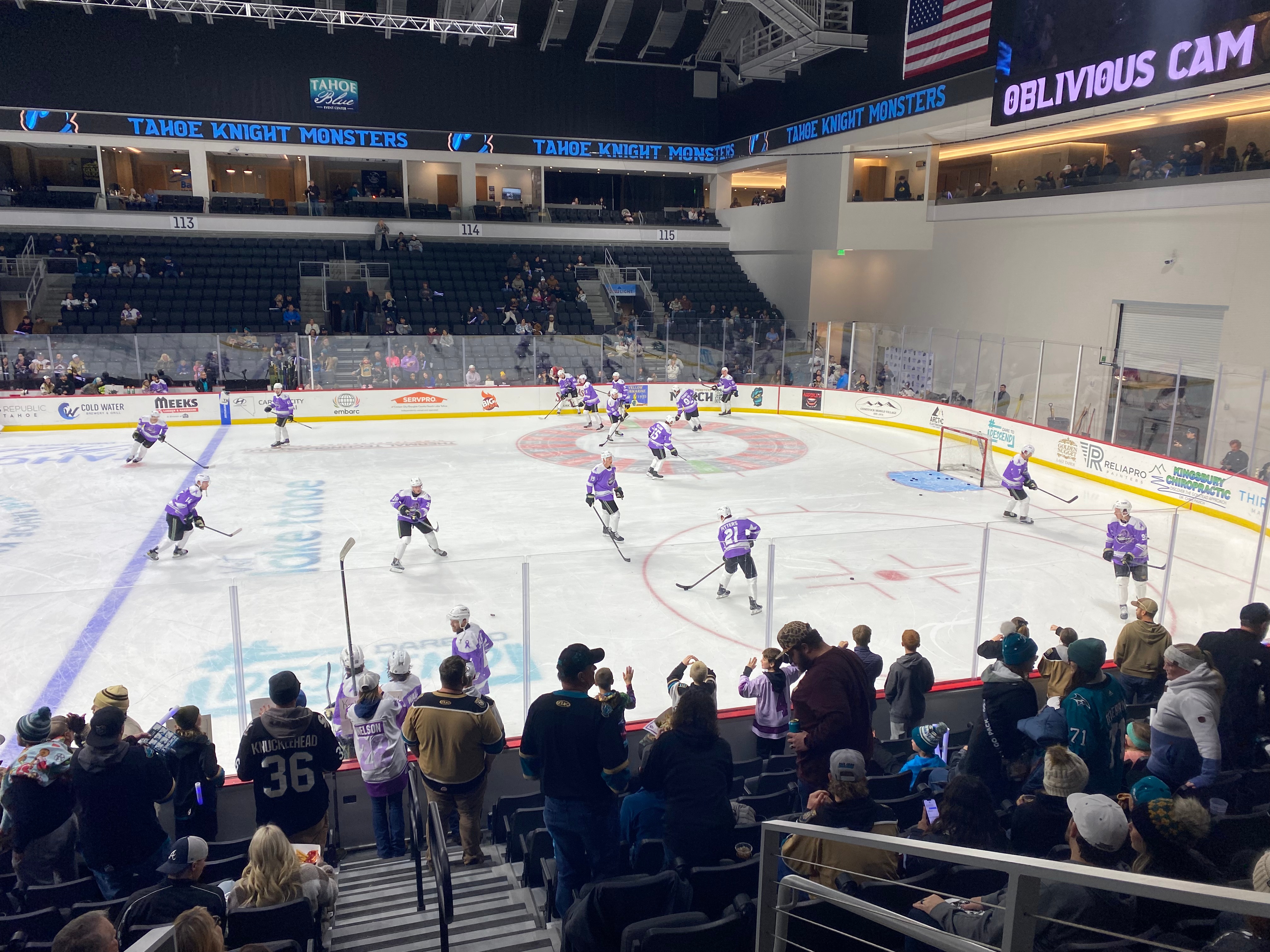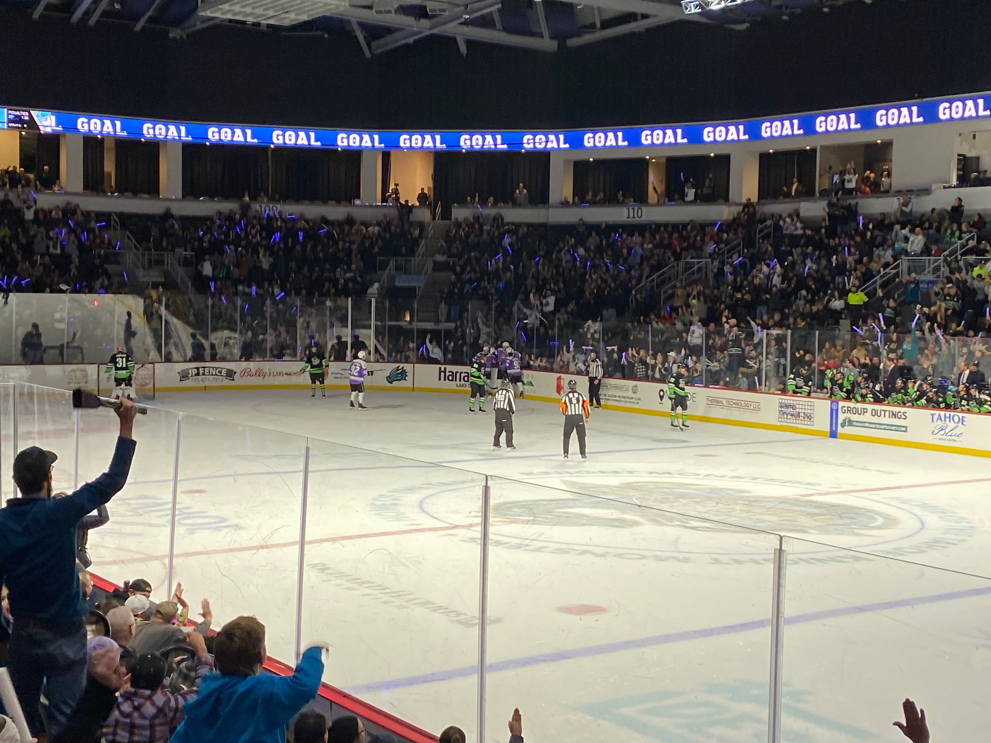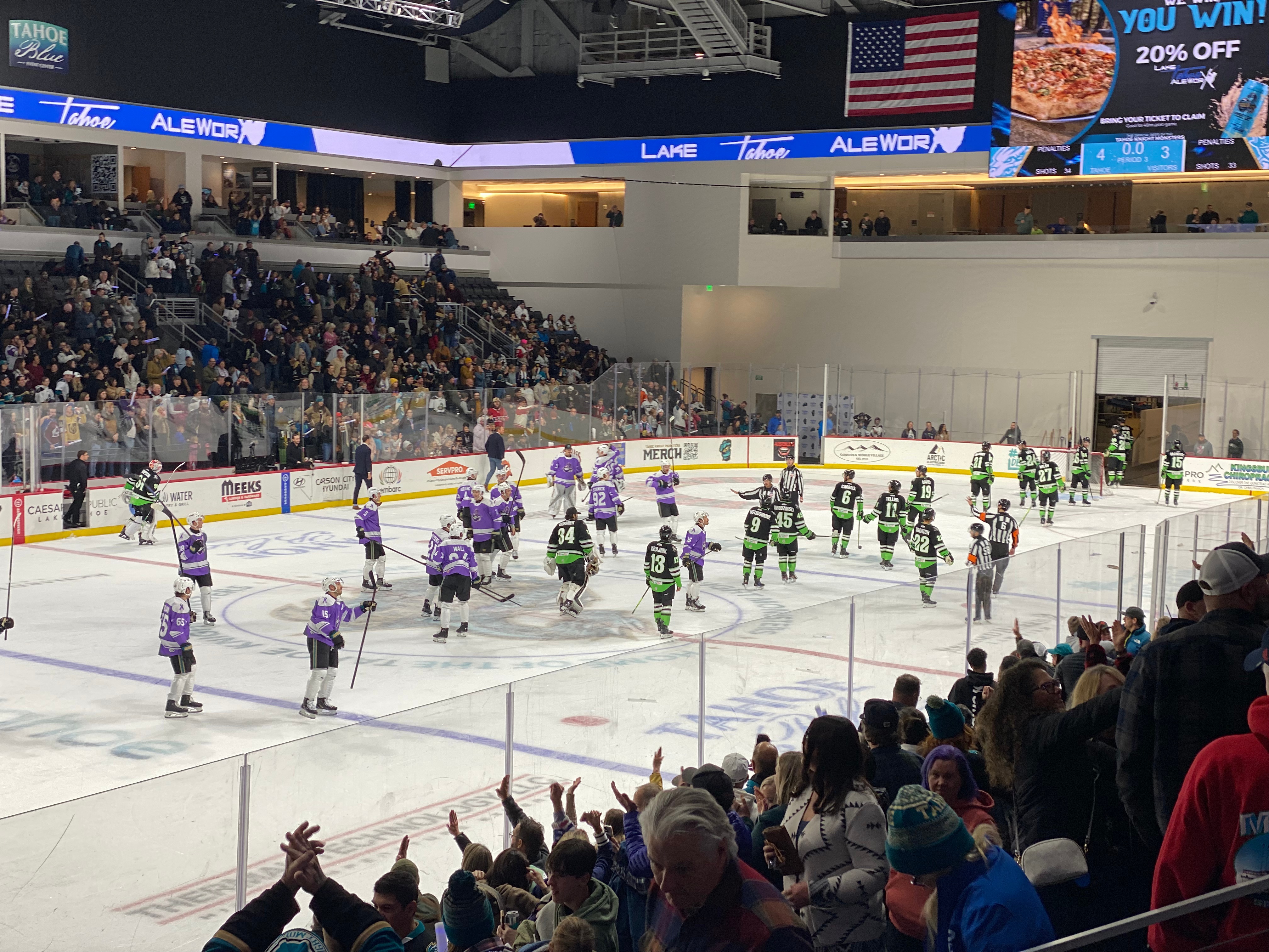 This one had a different feel right from the start, as the game featured a full four-official crew with two referees and two linesmen, something that had been missing in the previous two contests. The change was likely due to how physical that series had become. The Savannah Ghost Pirates struck first, but the Tahoe Knight Monsters refused to let that early goal define the period. Tahoe generated plenty of offensive chances early, and Cameron Whitehead came up with several highlight-reel saves that gave the Knight Monsters an immediate boost. There was noticeable behind-the-play activity in front of the benches. Savannah’s opening goal once again came on a tipped puck, continuing a trend of deflection goals that plagued Tahoe throughout the series. On that same play, the Knight Monsters struggled to cleanly exit their zone. Later in the period, the net was dislodged for a stoppage in play. Overall the first period reflected a strong bounce-back effort and an immediate response after Friday’s loss. Tahoe took control in the second period with one of their strongest stretches of hockey this season. Two goals, crisp passing, and strong puck movement built a commanding lead heading into the third. The physicality remained high, with an early scrum and another behind-the-play incident in front of the benches that went uncalled. During a power play, Tahoe appeared to score on a puck that zipped into the corner of the net and bounced back out, but the official (moving across the ice without a clear angle) ruled it no goal on the ice. Late in the period, frustration boiled over again after an icing call that, from the stands, appeared questionable, as a Tahoe player touched the puck first with no Savannah skater near enough to make a play.The Knight Monsters carried that momentum into the third period, but the Ghost Pirates refused to go quietly, clawing their way back into the game. Despite the push, Savannah couldn’t finish the comeback, and Tahoe held on for the win. One low-awareness penalty after a Savannah goal stood out as particularly unnecessary, especially in such a tight game, even if the call looked a bit embellished. One troubling pattern throughout the series was the tendency for players on both sides to engage in scrums after goals—an emotional response that, while entertaining, can quickly turn into a discipline problem. Over a long season, especially in close games, those types of penalties can be costly. The tension lingered even after the final buzzer, with another scrum breaking out and players slow to leave the ice.