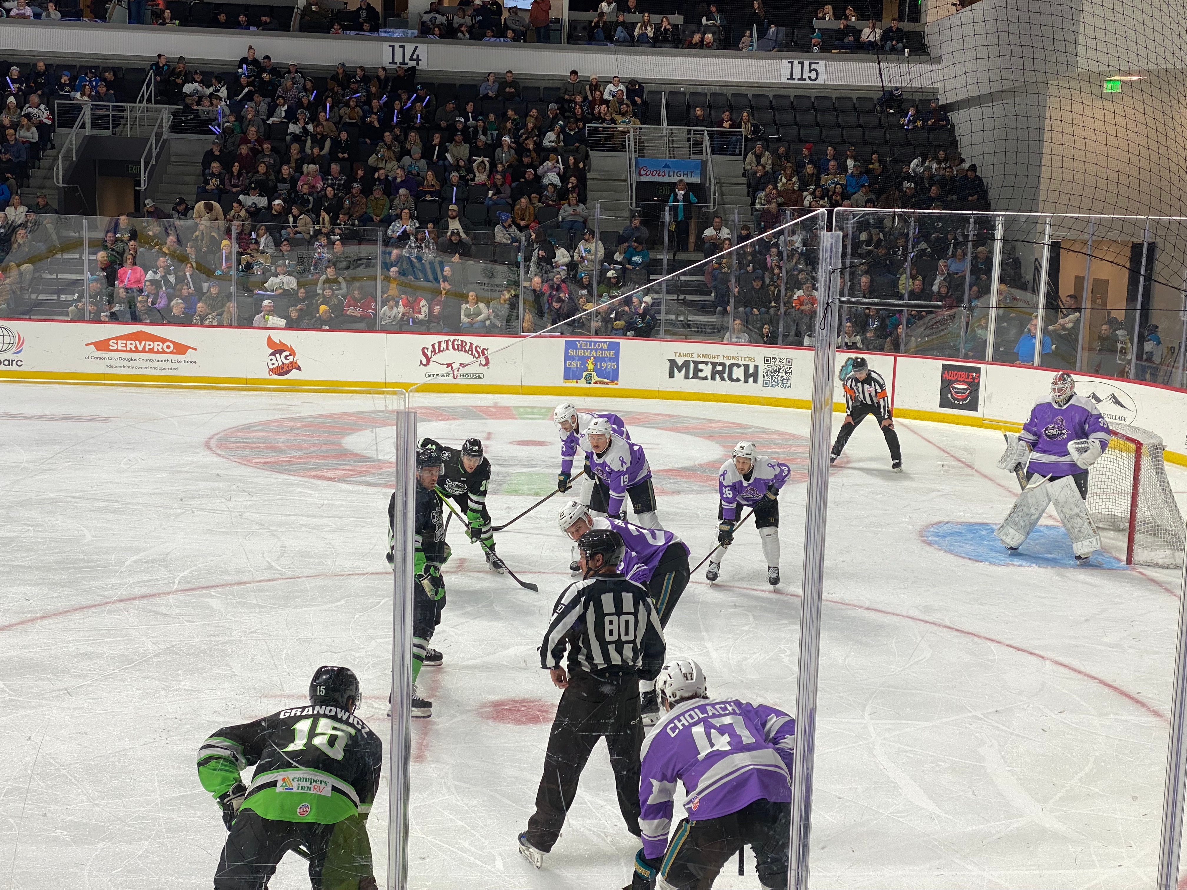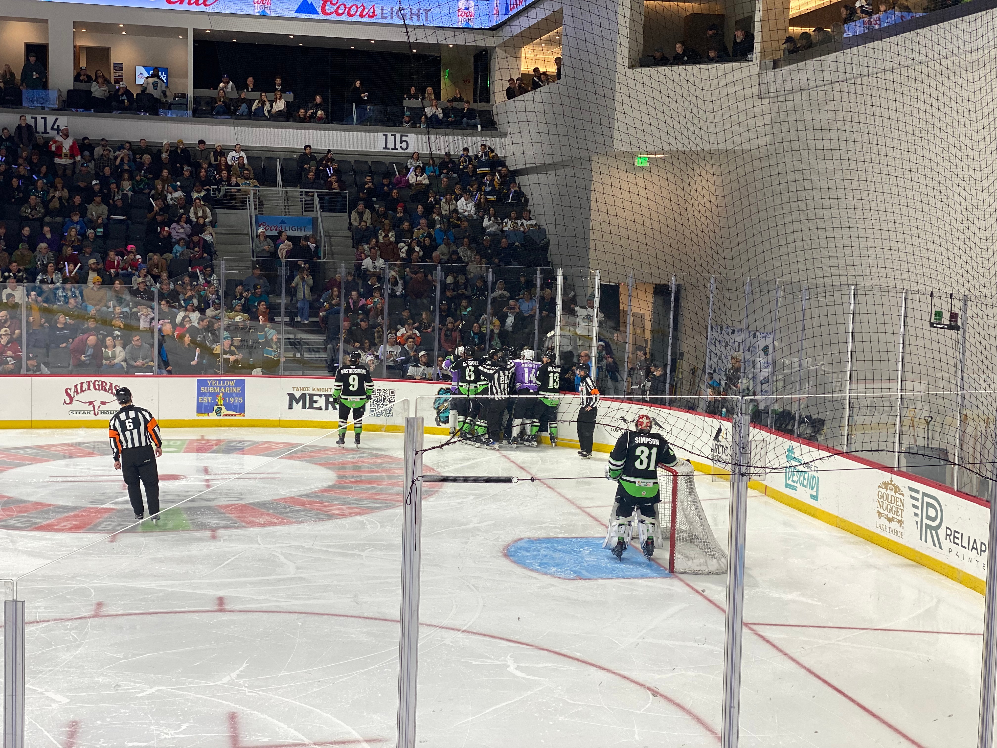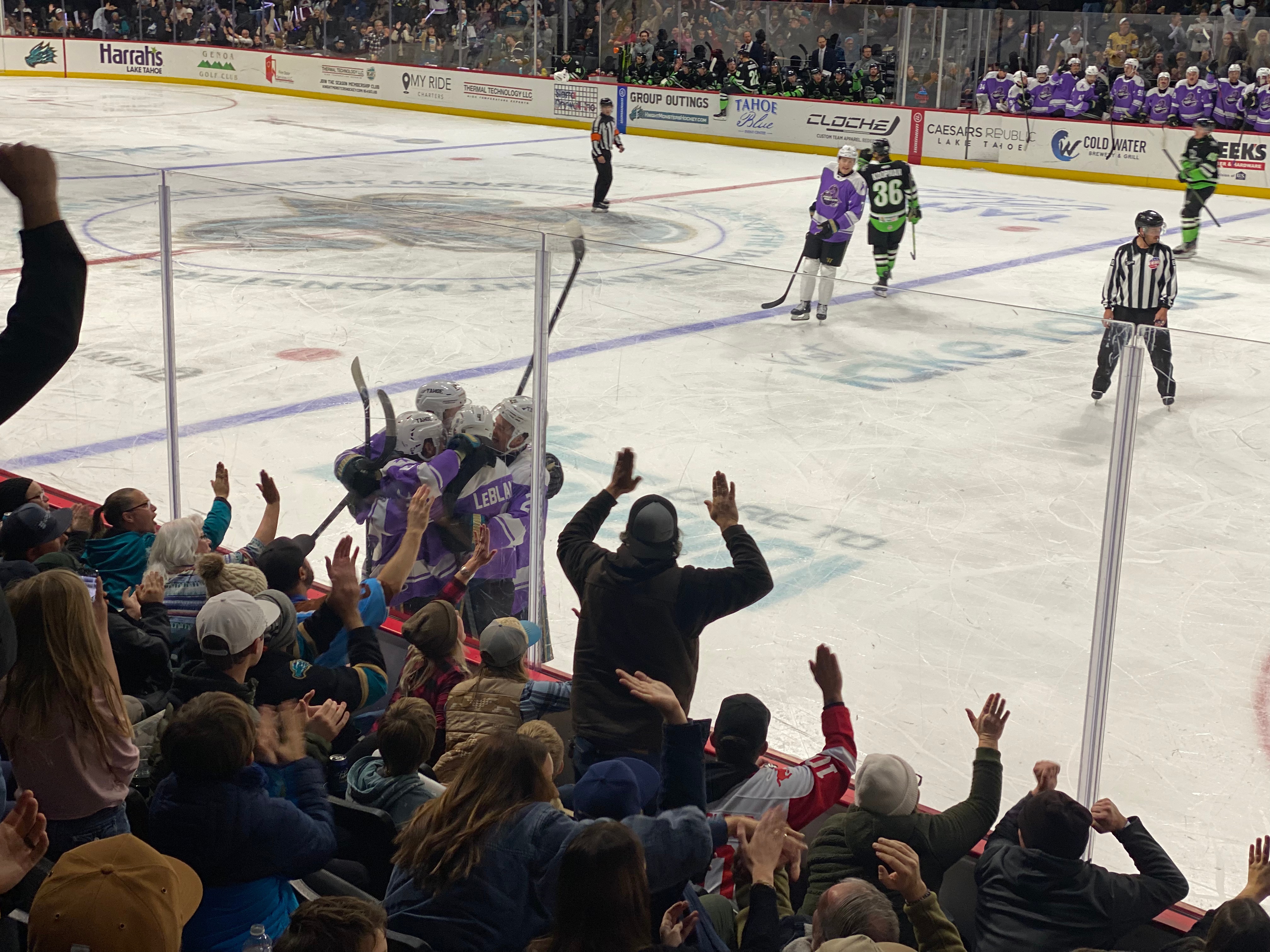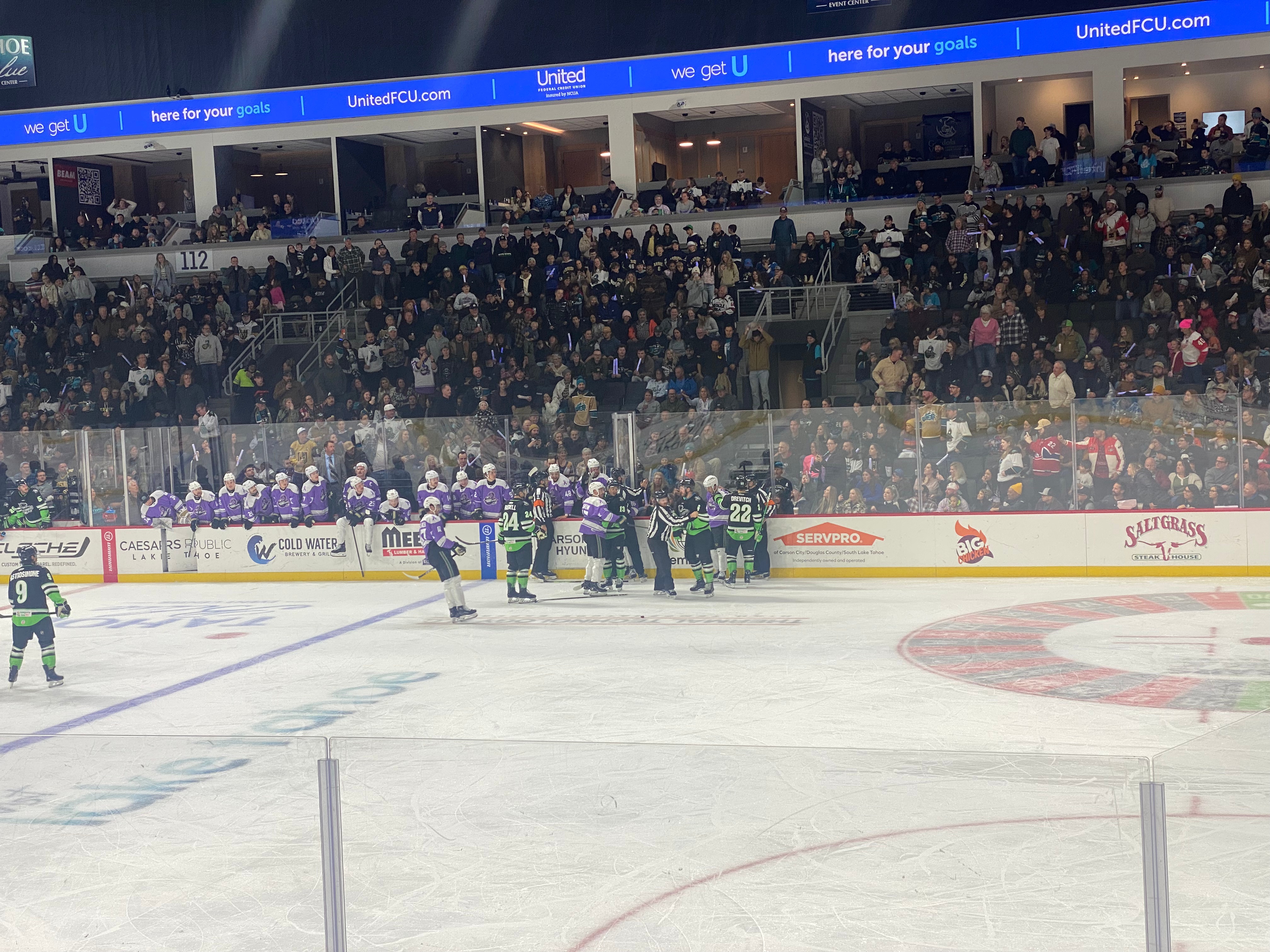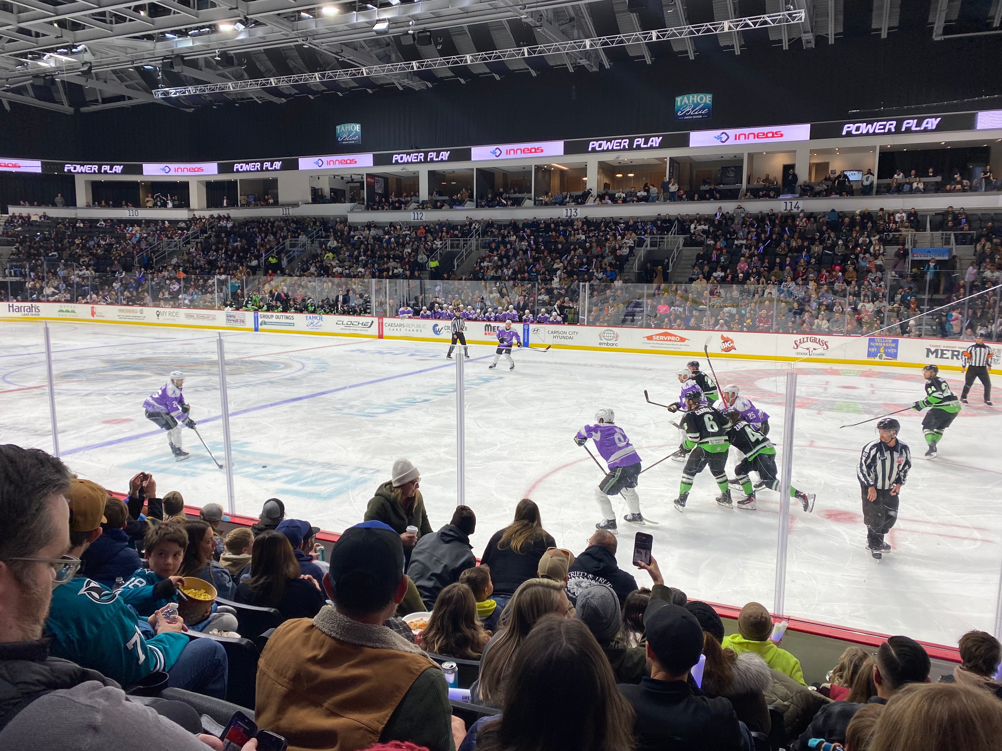 This one had a different feel right from the start, as the game featured a full four-official crew with two referees and two linesmen, something that had been missing in the previous two contests. The change was likely due to how physical that series had become. The Savannah Ghost Pirates struck first, but the Tahoe Knight Monsters refused to let that early goal define the period. Tahoe generated plenty of offensive chances early, and Cameron Whitehead came up with several highlight-reel saves that gave the Knight Monsters an immediate boost. There was noticeable behind-the-play activity in front of the benches. Savannah’s opening goal once again came on a tipped puck, continuing a trend of deflection goals that plagued Tahoe throughout the series. On that same play, the Knight Monsters struggled to cleanly exit their zone. Later in the period, the net was dislodged for a stoppage in play. Overall the first period reflected a strong bounce-back effort and an immediate response after Friday’s loss. Tahoe took control in the second period with one of their strongest stretches of hockey this season. Two goals, crisp passing, and strong puck movement built a commanding lead heading into the third. The physicality remained high, with an early scrum and another behind-the-play incident in front of the benches that went uncalled. During a power play, Tahoe appeared to score on a puck that zipped into the corner of the net and bounced back out, but the official (moving across the ice without a clear angle) ruled it no goal on the ice. Late in the period, frustration boiled over again after an icing call that, from the stands, appeared questionable, as a Tahoe player touched the puck first with no Savannah skater near enough to make a play.The Knight Monsters carried that momentum into the third period, but the Ghost Pirates refused to go quietly, clawing their way back into the game. Despite the push, Savannah couldn’t finish the comeback, and Tahoe held on for the win. One low-awareness penalty after a Savannah goal stood out as particularly unnecessary, especially in such a tight game, even if the call looked a bit embellished. One troubling pattern throughout the series was the tendency for players on both sides to engage in scrums after goals—an emotional response that, while entertaining, can quickly turn into a discipline problem. Over a long season, especially in close games, those types of penalties can be costly. The tension lingered even after the final buzzer, with another scrum breaking out and players slow to leave the ice.