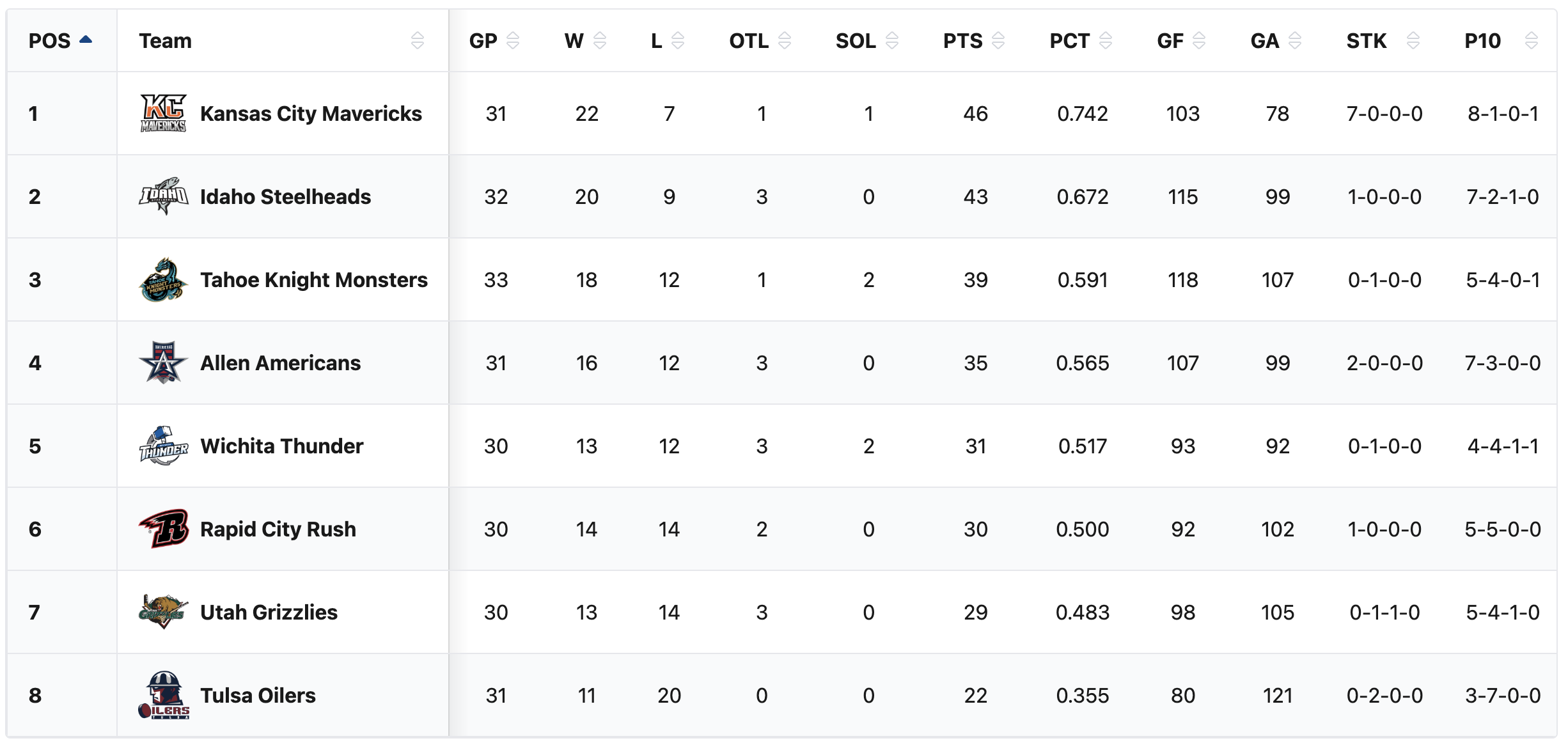 The Tahoe Knight Monsters now have a record of 18-12-3 with 39 points. The Knight Monsters are 8th overall in the ECHL. They are in 4th in the ECHL Western Conference. They are in 3rd in the ECHL Western Conference Mountain Division. They are three and a half wins of seven points out of first place in the division. They are in a playoff spot. They are four wins or eight points into a playoff spot.