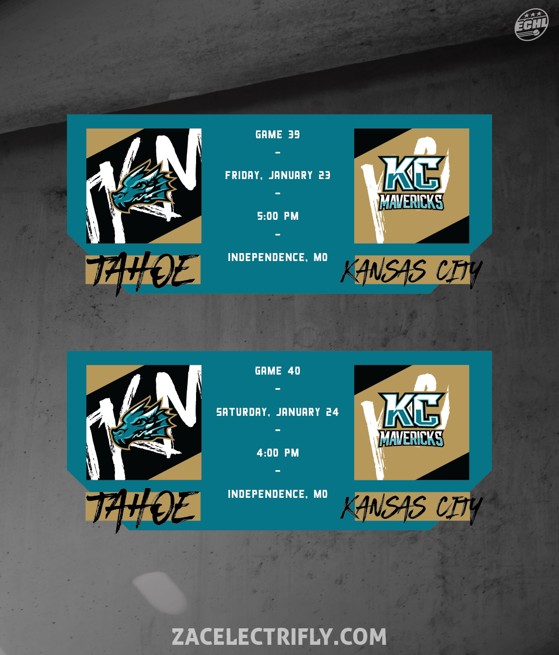 The Tahoe Knight Monsters are heading to Independence, Missouri for a back-to-back showdown against the Kansas City Mavericks. Both games are set to take place at Cable Dahmer Arena. The series kicks off on Friday, January 23rd, with puck drop scheduled for 5:00 PM. The action continues the following day as the two teams meet again on Saturday, January 24th, this time with an earlier 4:00 PM start. It’s a quick two-game set that should bring plenty of intensity as Tahoe looks to make the most of their road trip.