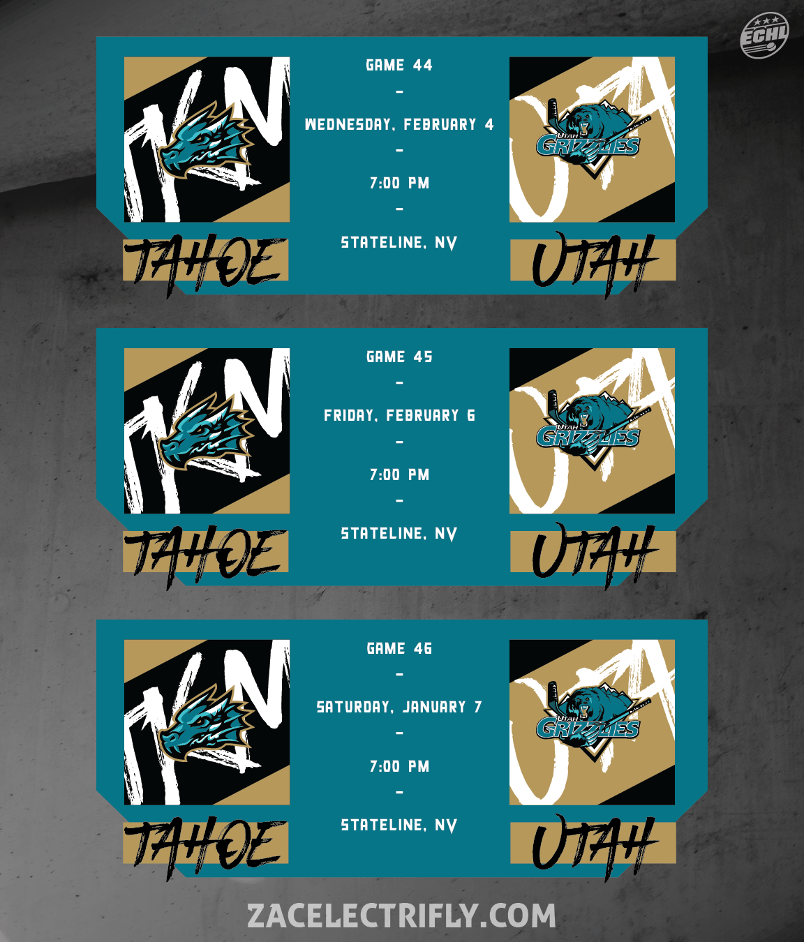 The Tahoe Knight Monsters take on the Utah Grizzlies for game forty-six of the season on Saturday, February 7th. This game will be in Stateline, Nevada, at the Tahoe Blue Event Center. Puck drop is scheduled for 7:00 PM.