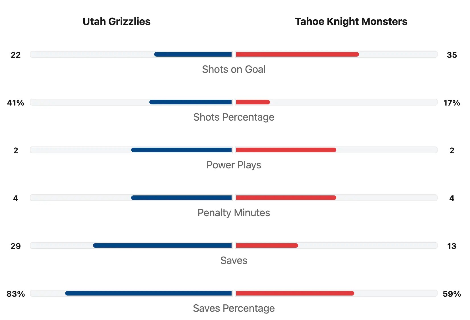 The Tahoe Knight Monsters took the ice for game forty-four of the season to face the Utah Grizzlies in an important Mountain Division matchup, with both teams entering the night in very different positions. Tahoe came in sitting third in the division with a 23-16-4 record and some momentum after a strong win over the Kansas City Mavericks. As the ECHL affiliate of the Vegas Golden Knights, the Knight Monsters remained firmly in the playoff conversation and were looking to build on recent success. Utah, on the other hand, entered the contest seventh in the division at 15-23-4 and searching for answers. Affiliated with the Colorado Avalanche, the Grizzlies were attempting to halt a four-game losing streak after being swept in a three-game series by the Greenville Swamp Rabbits, a stretch that added urgency to an already difficult situation.