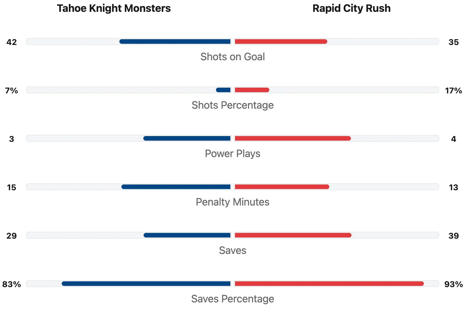 The Tahoe Knight Monsters scored two in the second period. The Rapid City Rush scored another one in the second period. The Rush were leading 4-2 going into the third period.