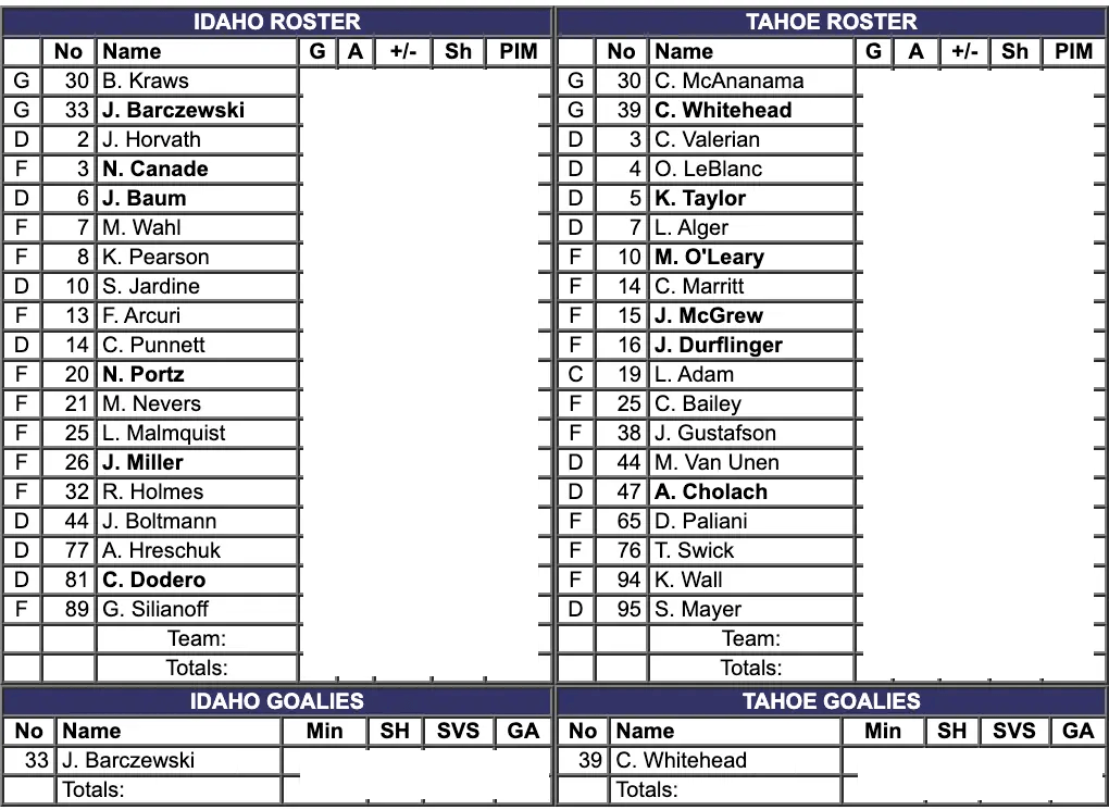 The Tahoe Golden Monsters did not play around in this game. They came out on a mission. They led for all three periods. They seem to be trying to get back in the fight as a top team in the division. Tahoe still allowed a lot of shots. That has been a consistent problem all season. Tahoe gets really comfortable in their own zone. There were over eighty penalty minutes in this game. There were injuries to players. There were even injuries to officials. The referees did a bad job at protecting the players in this game. That’s why so many players were willing to take bad calls. The officials were not doing their job. The players took matters into their own hands. It got to a point where only retaliatory penalties were being called. The ref lost control of the game early on. That did not stop the Golden Monsters from putting seven goals in the net.