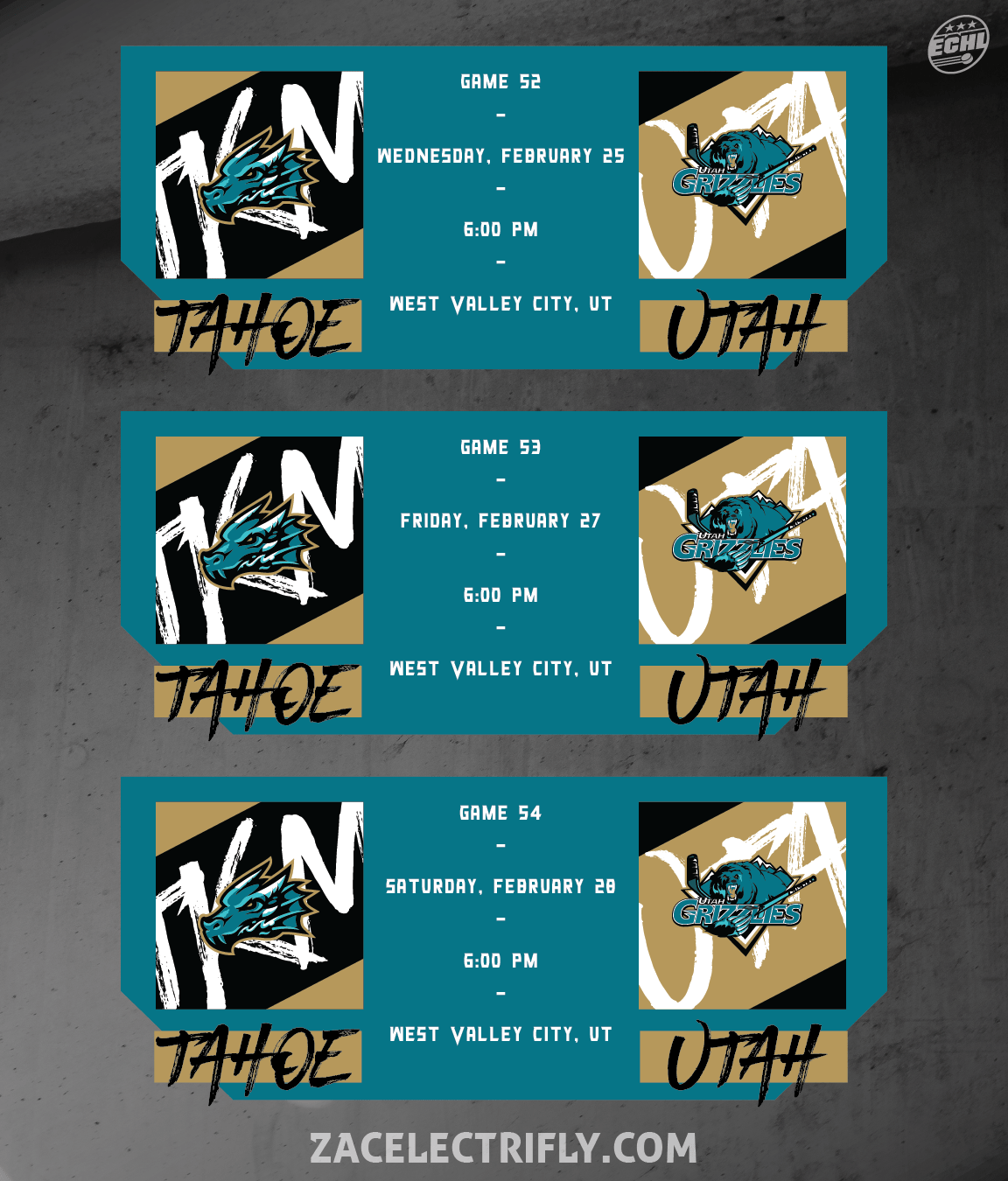 The Tahoe Knight Monsters return to Utah this week. They’ll be greeted by a familiar Mountain Division rival in the Utah Grizzlies for a three-game series. It all begins on Wednesday, February 25th at 6:00 PM. The away series continues on Friday, February 27th at 6:00 PM. The series wraps up on Saturday, February 28th at 7:00 PM, as the Knight Monsters close out the stretch.