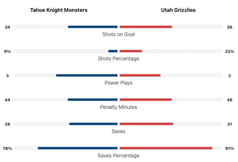 The offense of the Utah Grizzlies was just too much for the Tahoe Knight Monsters to handle in this one. There were also a lot of penalties. Lots of penalties has been a recent trend in Tahoe Knight Monsters games. Now is the time where the Knight Monsters need to win games heading into the playoffs. Instead, Tahoe plays continues to play inconstant.