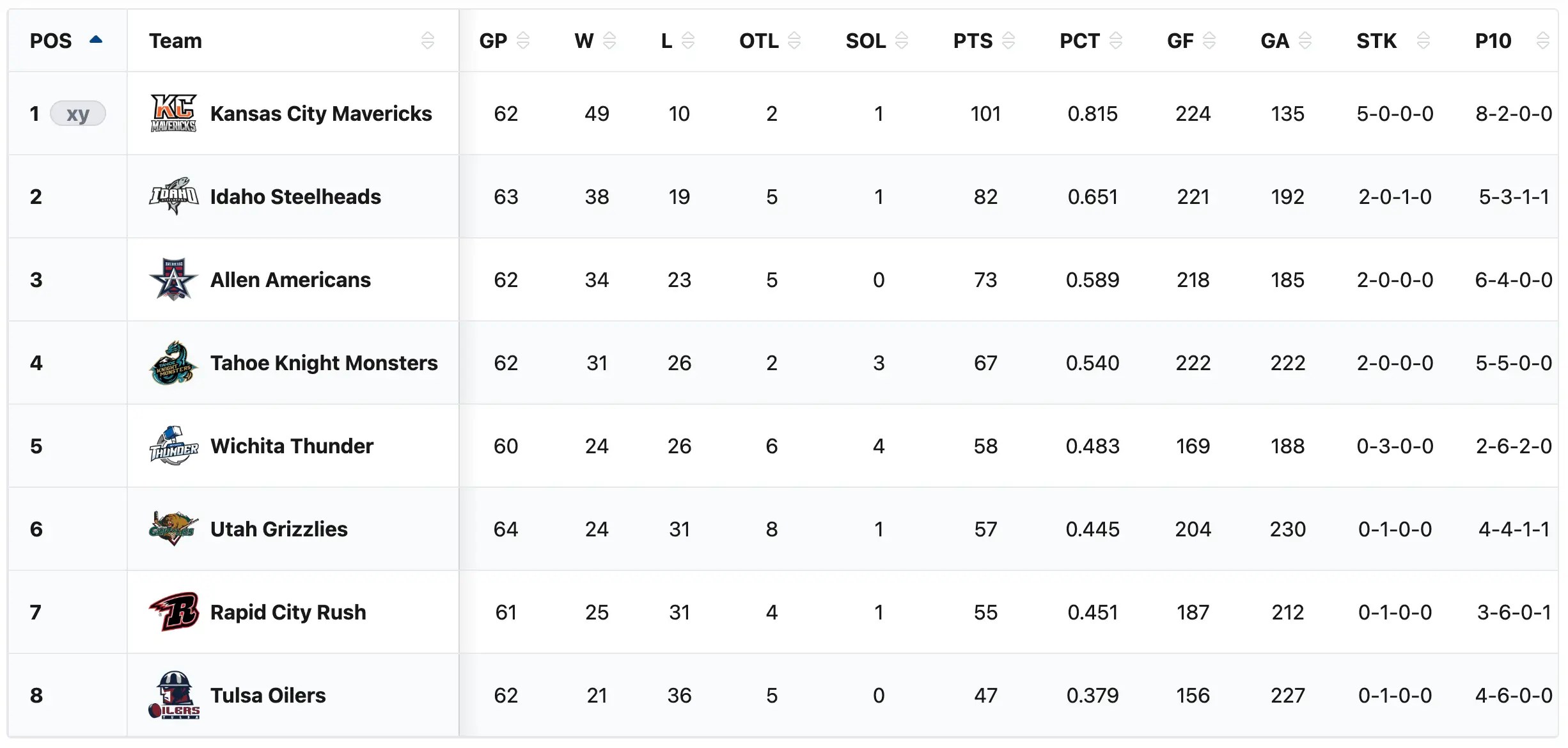 The Tahoe Knight Monsters have now played 62 games. They have a record of 31-26-5 with 67 points. They are in fourteenth place overall in the ECHL. They are in seventh place in the Western Conference. They are in fourth place in the Mountain Division. They are in a playoff spot. They are nine points into a playoff spot. They are not in danger of moving out of a playoff spot right now. The Kansas City Mavericks have already secured first place in the whole league. The best Tahoe can finish right now is second place in the division. Tahoe are six points away from third place. Tahoe are fifteen points out of second place in the division. I think Tahoe could push for the third in the division with a strong showing down the stretch. Tahoe would have to be near perfect to get into second place. If the Knight Monsters finish in fourth they will have to play the Kansas City Mavericks. A third place finish and having to play the Idaho Steelheads in the first round of the playoffs would be better.