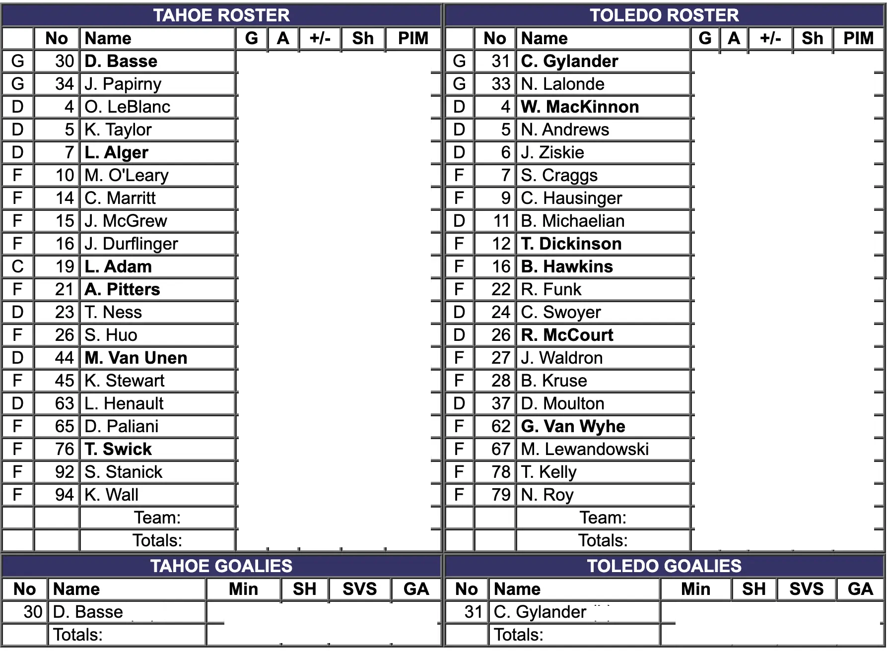 Dominic Basse got the start in net for the Tahoe Knight Monsters. It was his second game played for Tahoe this season. Carter Gylander got the start in net for the Toledo Walleye. It was his twenty-eighth game played for Toledo.