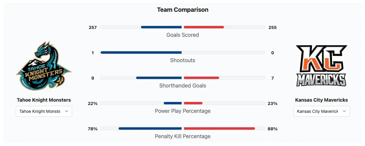 Beyond the team matchup, this series also reflects the broader NHL development pipeline. The Knight Monsters serve as the ECHL affiliate of the Vegas Golden Knights, while the Mavericks are affiliated with the Seattle Kraken. That connection adds intrigue, as both organizations are developing prospects who could eventually make an impact at the NHL level. The Mavericks finished the regular season with 20 more wins, 18 fewer losses, and 38 more points, while also boasting a significantly better goal differential and overall winning percentage. While Tahoe did show flashes, scoring slightly more goals and generating two more shorthanded goals, the overall statistical comparison highlights just how steep the climb will be.